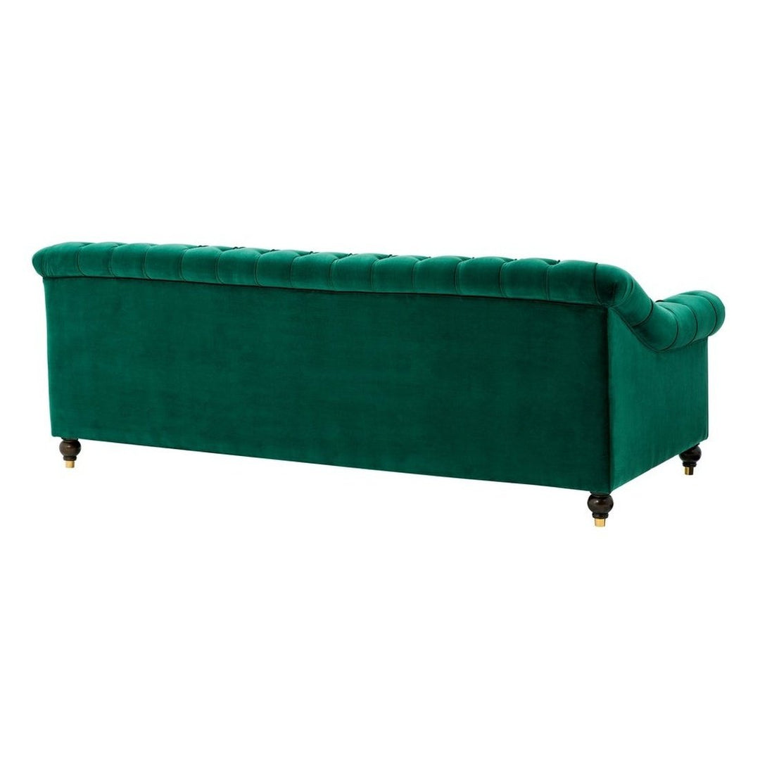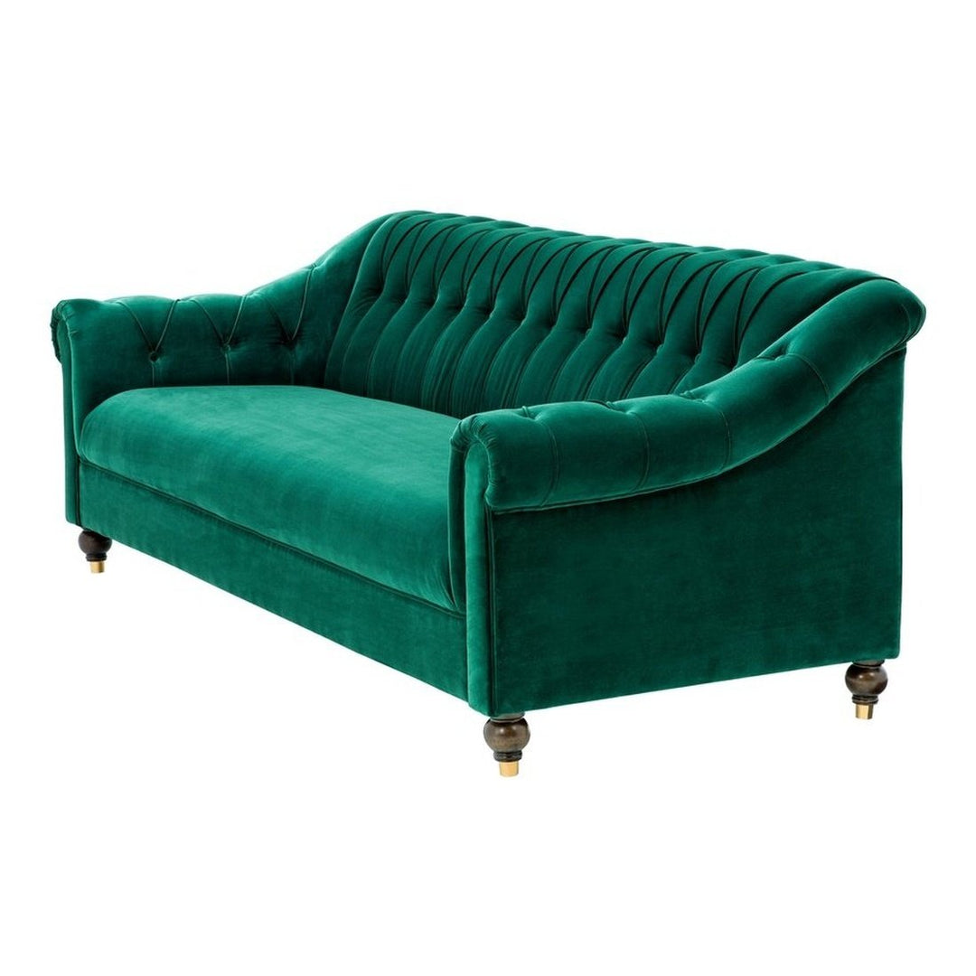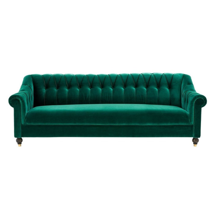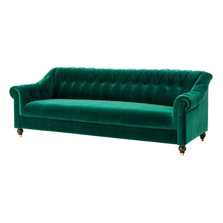 Immerse yourself in exotic opulence. Designed with an emphasis on luxury and a relaxed approach to living, the gorgeous Brian Sofa is grounded in nature. The lush Cameron green upholstery and brown bun feet with gold finished caps give it a glamorous appeal.