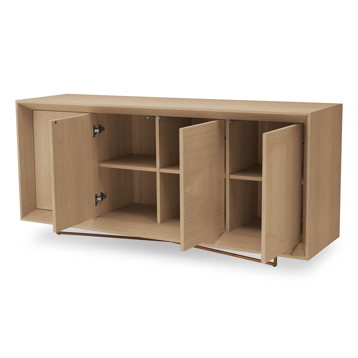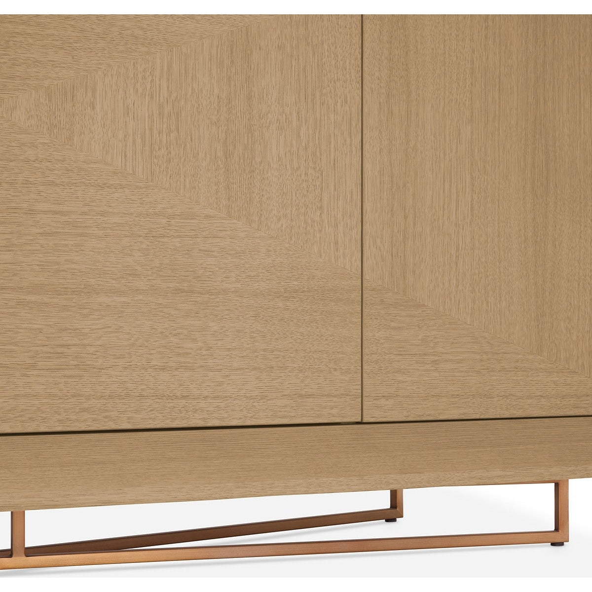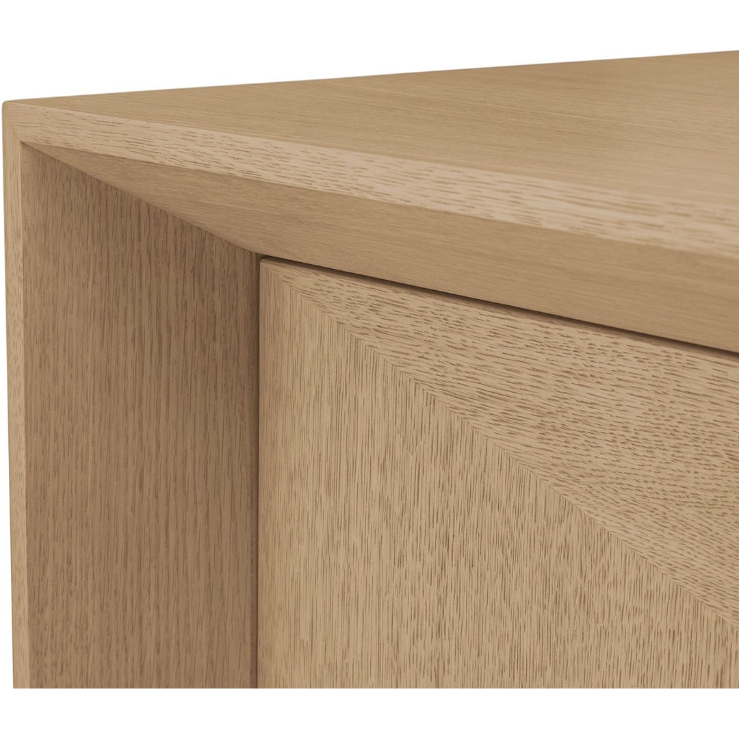 The majestic Dresser Sonesta is a work of art that epitomizes natural elegance for your bedroom. Adorned in exquisite Natural Oak veneer, this dresser boasts a subtle and captivating veneer pattern on its doors, while the brushed brass finish elevates the dresser's allure to unprecedented levels. Embrace both style and practicality with the Dresser Sonesta, an impeccable storage solution that seamlessly complements your lavish bedroom decor.