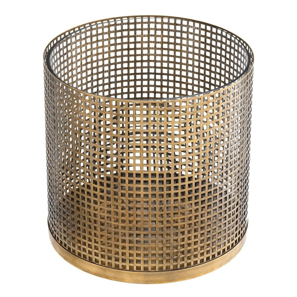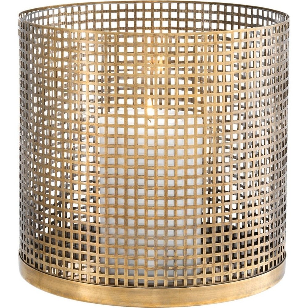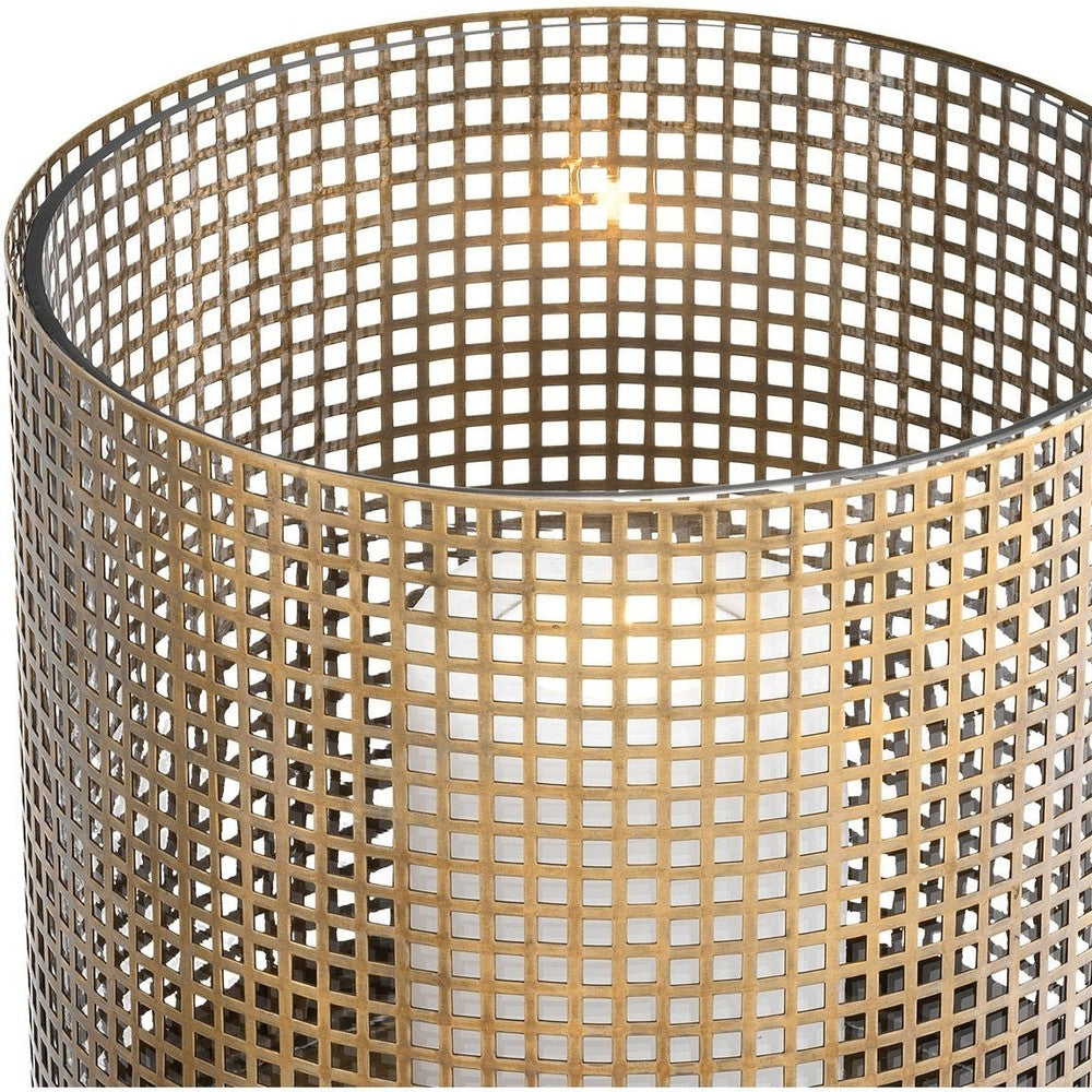 Create a warm and welcoming atmosphere in your home with the Sterling Hurricane. This gorgeous candle holder with a lattice work design and vintage brass finish helps to diffuse light around your room.