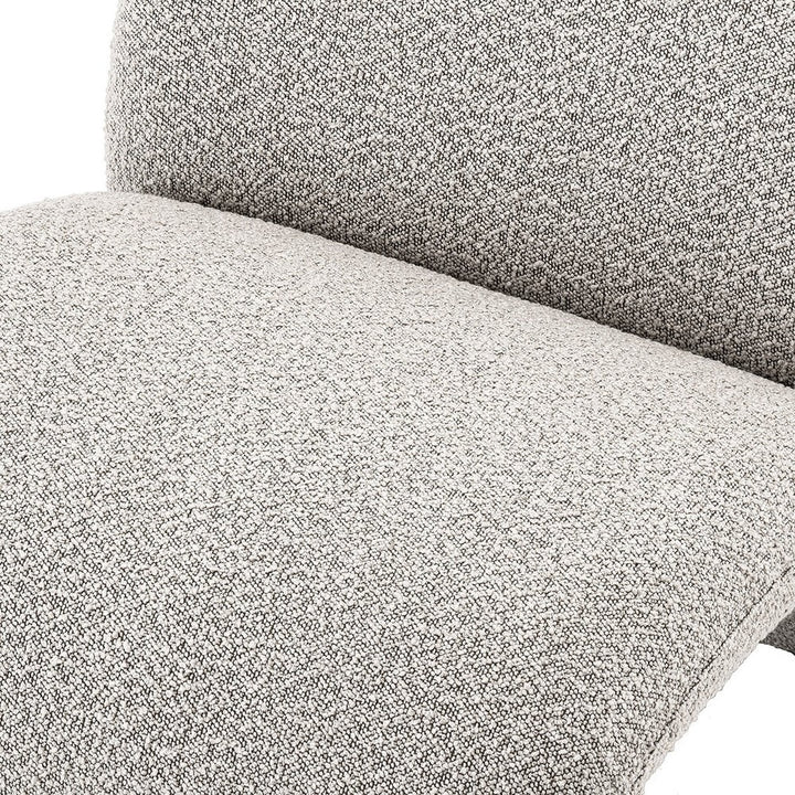 Upholstered with durable grey bouclé fabric, the Vignola Chair brings a sense of refinement to your living space. Sink deep into the Vignola and feel embraced by its backrest. The Vignola's modern aesthetic reflects a sense of simplicity and elegance, and its unique contemporary design allows for a timeless look for years to come.