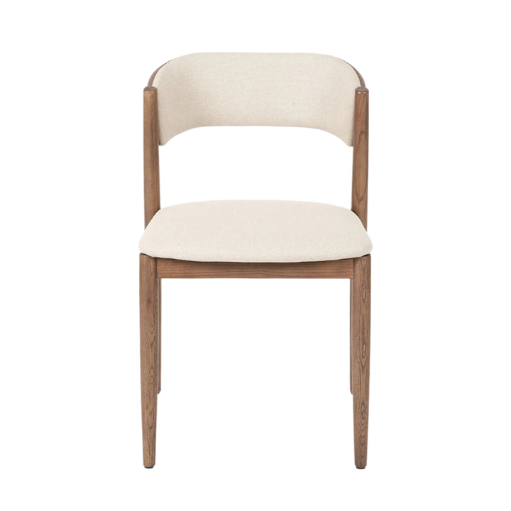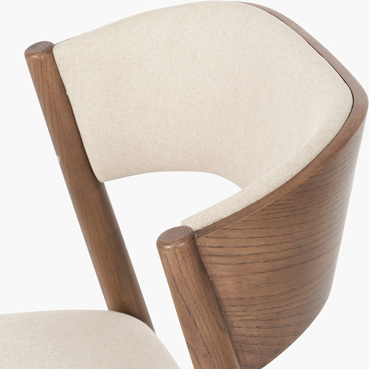 This stunning dining chair features a minimalist design that exudes a scandinavian aesthetic. Made in Vietnam, this dining chair features a gorgeous contrast with the ash wood frame in an on-trend dark finish, with a natural linen effect upholstered chair back and seat for enhanced comfort, providing a contemporary look.