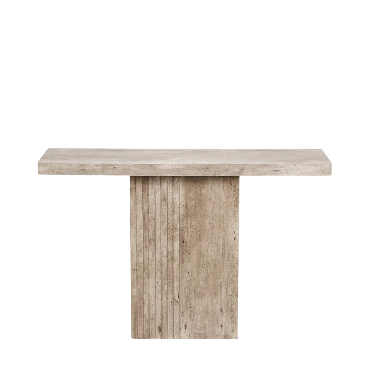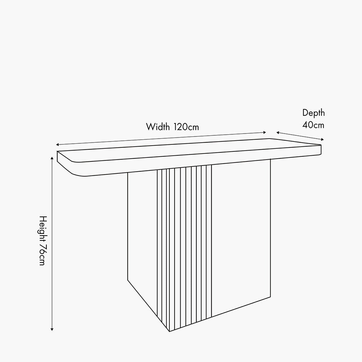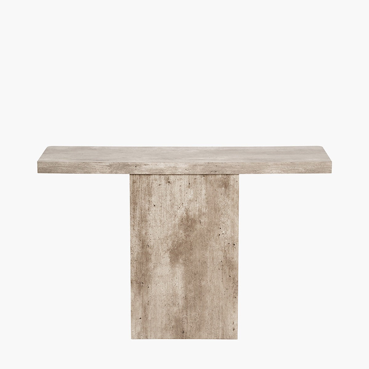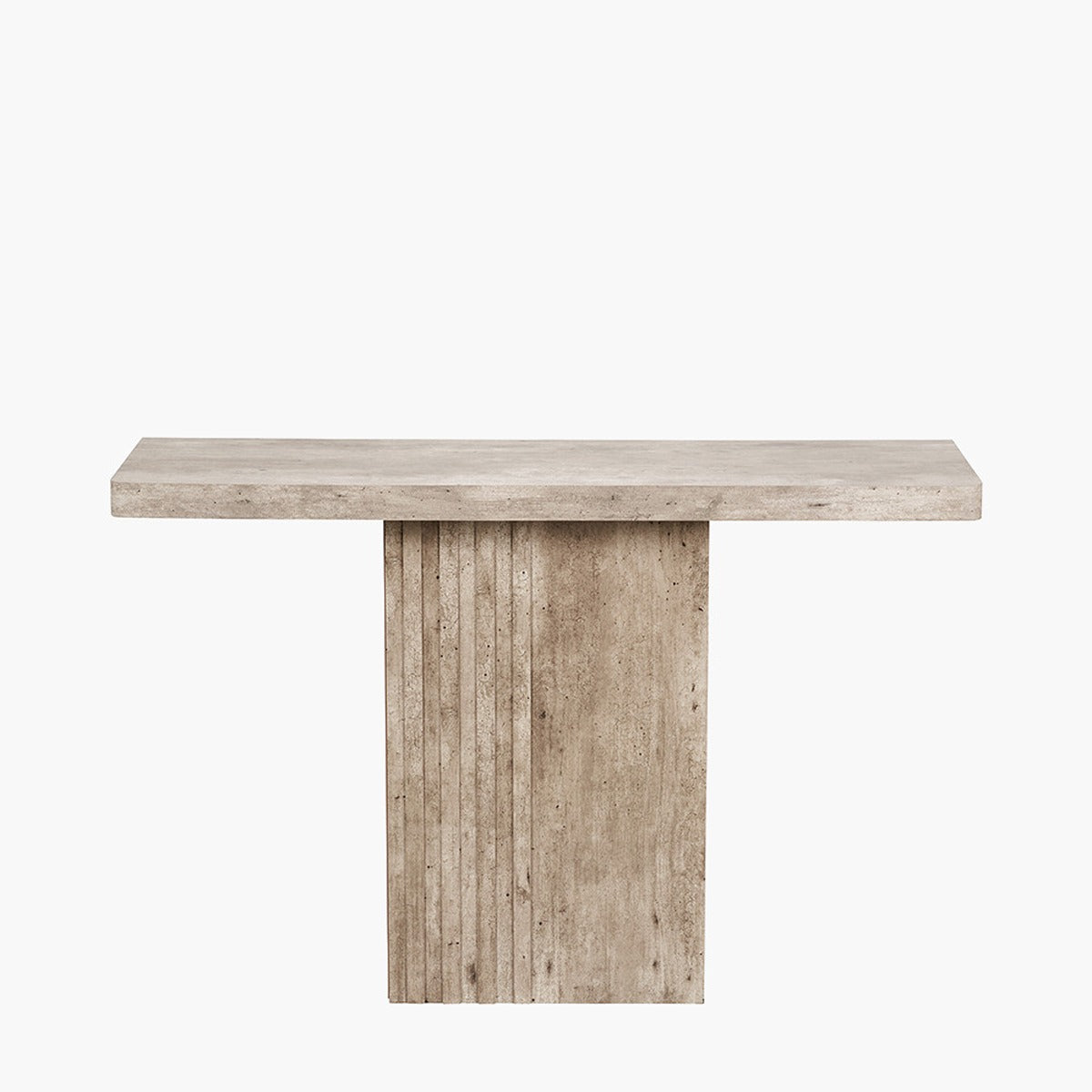 Make a statement with our Elna Concrete Effect Wood Veneer Groove Detail Console Table. Its smooth concrete effect surface and stylish groove detailing on the base, make it a statement piece that effortlessly fits into any interior style. The substantial top is the ideal space to house your favourite table lamp, a vase of flowers, or some stylish home accents.
