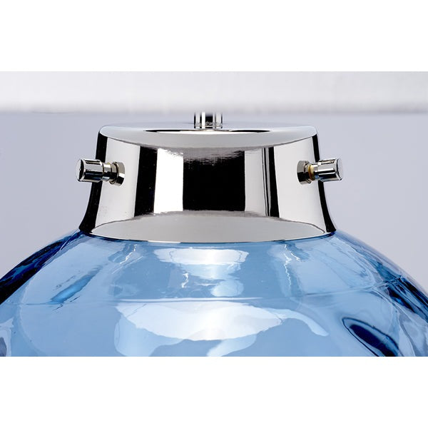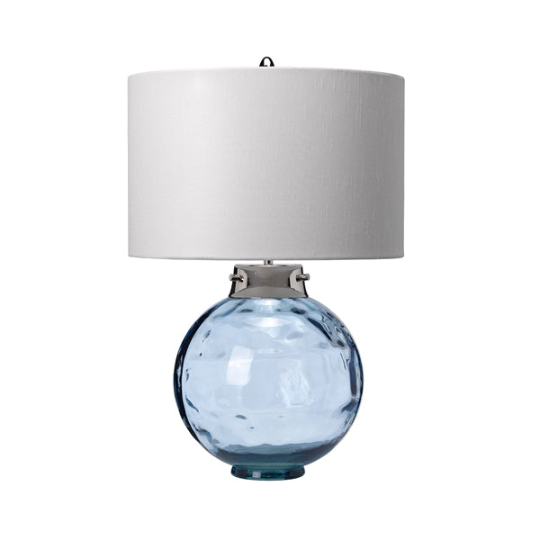 Kara Metalwork Table Lamp - Polished Nickel & Blue Glass