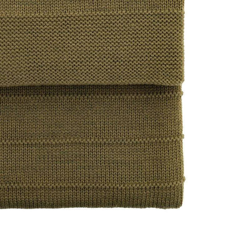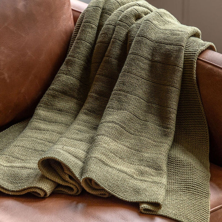 The ultimate comfort, this olive green knit throw has a subtle stripe texture and super soft feel, just what's needed to get extra cosy. Available in additional colours.