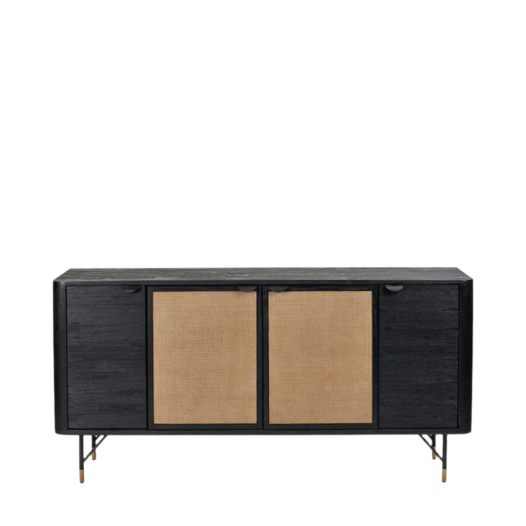 This four-door sideboard from the Fora Collection is crafted in Vietnam, from Acacia Wood and finished in a beautiful matt black. The doors have the added feature of contrasting natural rattan panels adding to the striking look. Internally there is a shelf throughout and all finished in matching black. This sideboard will be the focal point of your interior space.