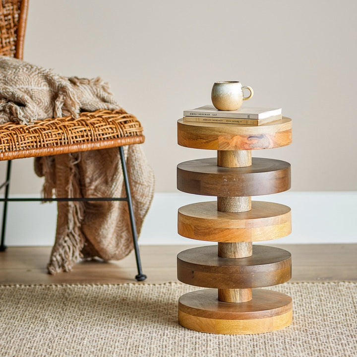 The Franka Side Table from Bloomingville is a stylish piece of furniture made from FSC-certified mango wood. The table's unique design, with light and dark shades of mango wood, creates a striking contrast that adds character to any interior. Its sculptural form makes it ideal as both a practical and decorative element, no matter where it is placed.