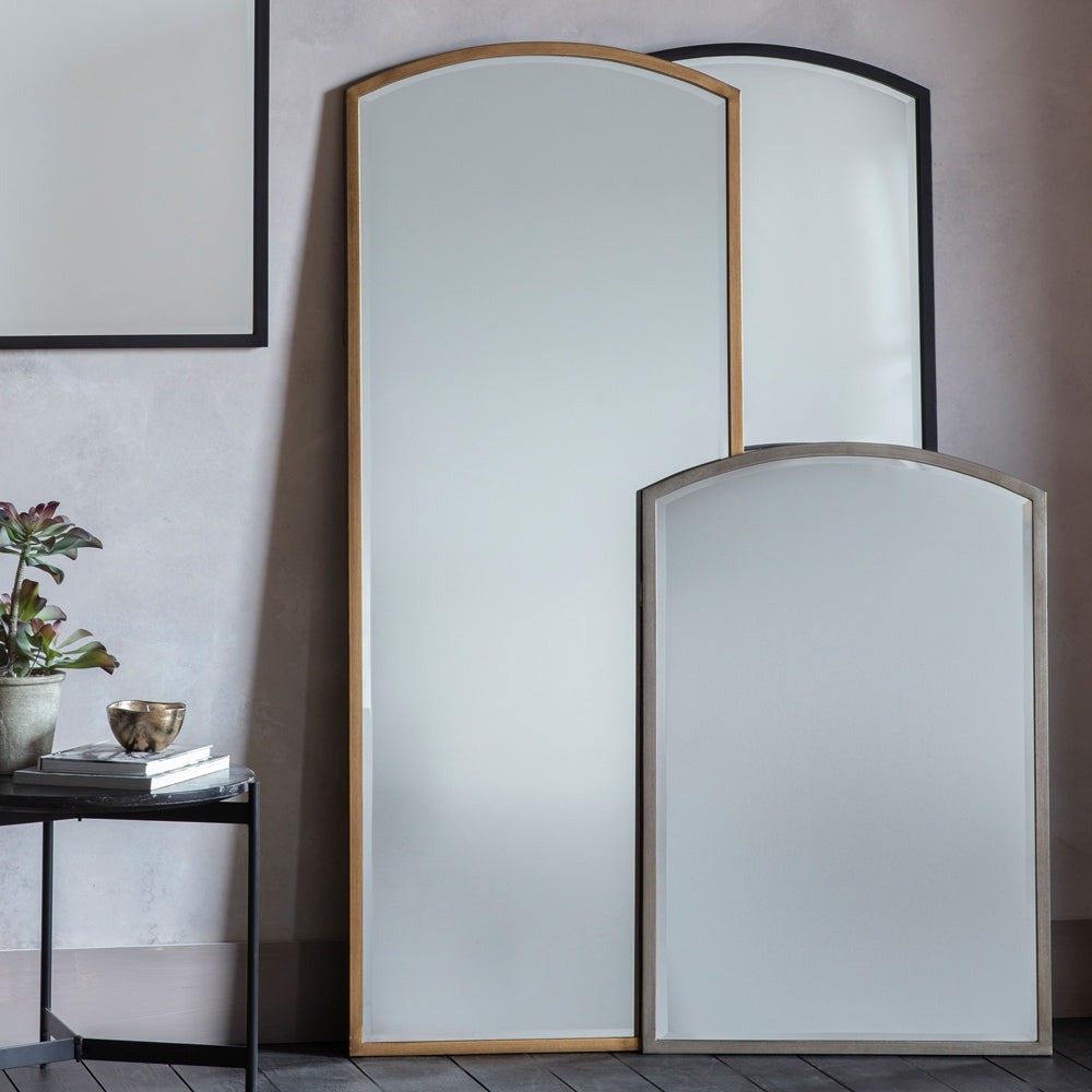 Minimalist and contemporary collection of arched mirors. Featuring a thin metal frame and available in two sizes and finishes, this collection has a mirror to suit any space.