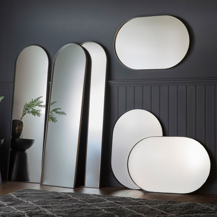 With a sleek stylish design and striking minimalistic metal frame in a subtle, yet glamourous champagne finish this mirror is just what your room needs. Available in other shapes and finishes.