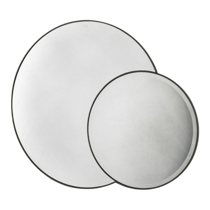 Contemporary style mirror which is a decorative piece of art in itself with interlocking circular shapes. Add some visual intrigue onto your walls with this lovely mirror with contemporary black frames.