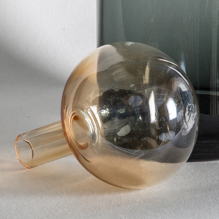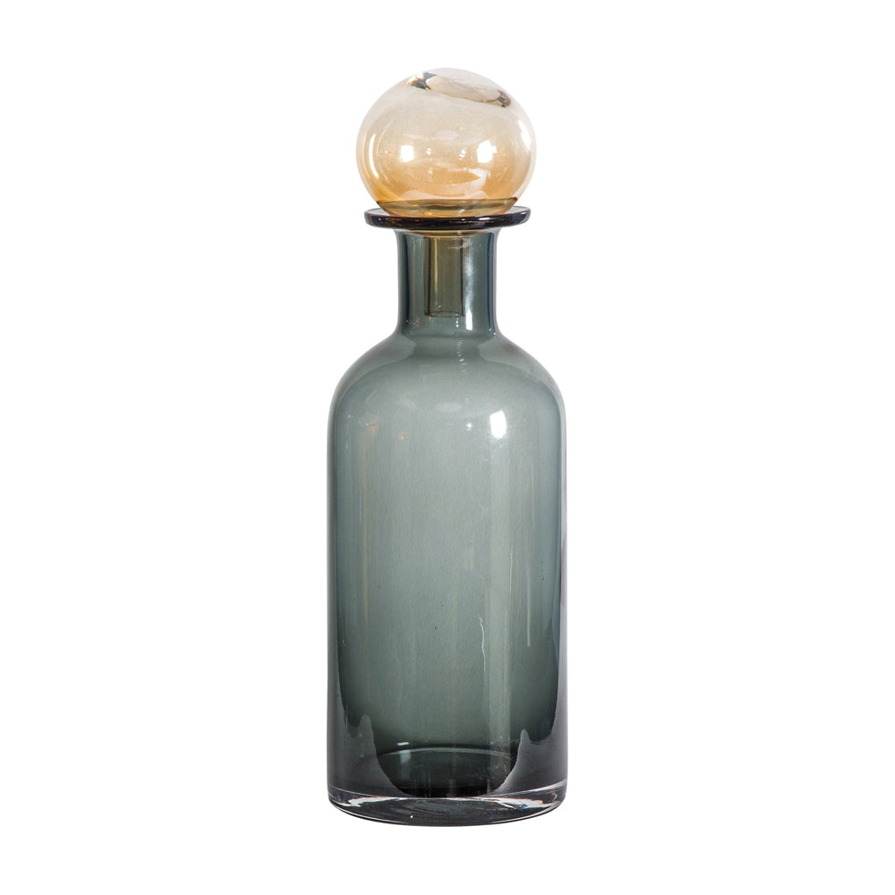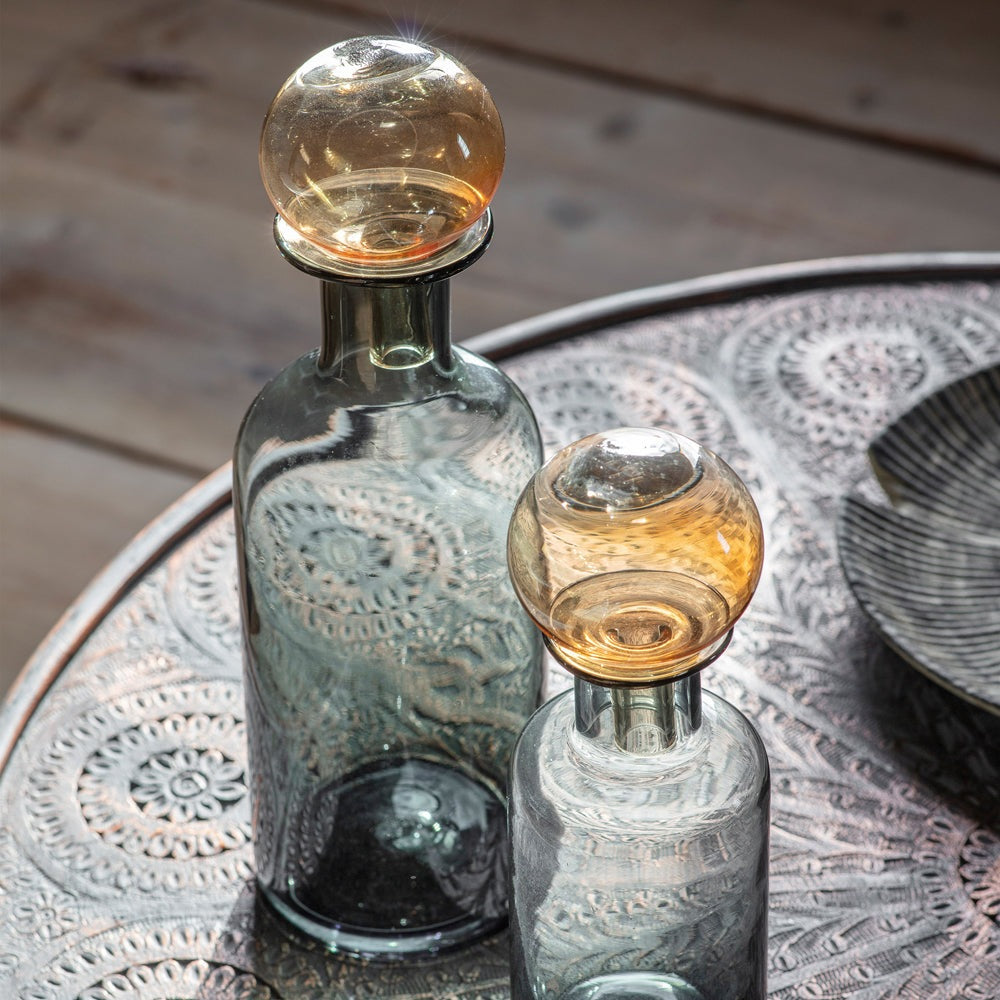 An unusual, stylish decanter, featuring a grey glass bottle paired with a large amber stopper. It can be used purely as a decorative ornament or fill with your favourite tipple for classy nights in. Also available in a smaller size and the two look great paired together.