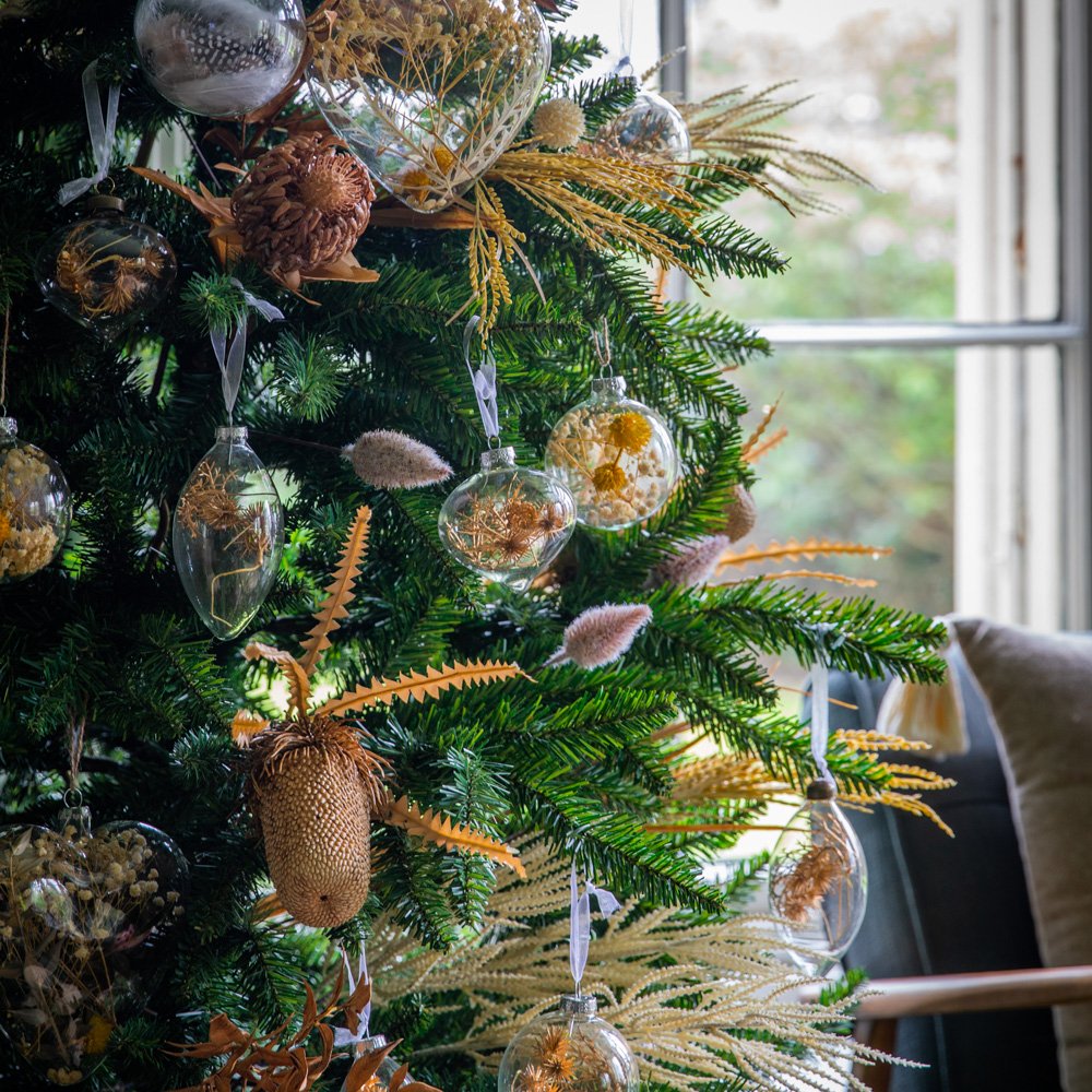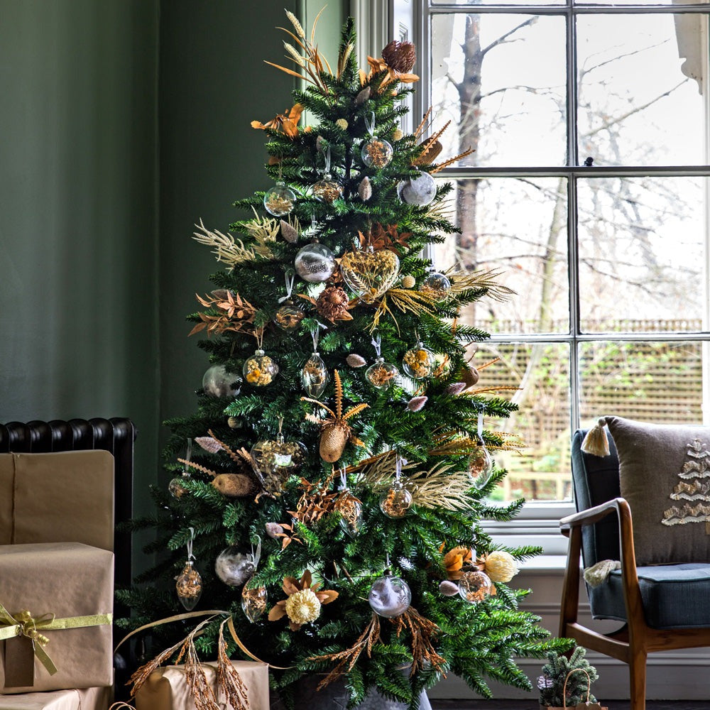 These stunning baubles offers a contemporary twist on a classic, featuring textured fawn coloured feathers inside a clear bauble, they are sure to stand out.