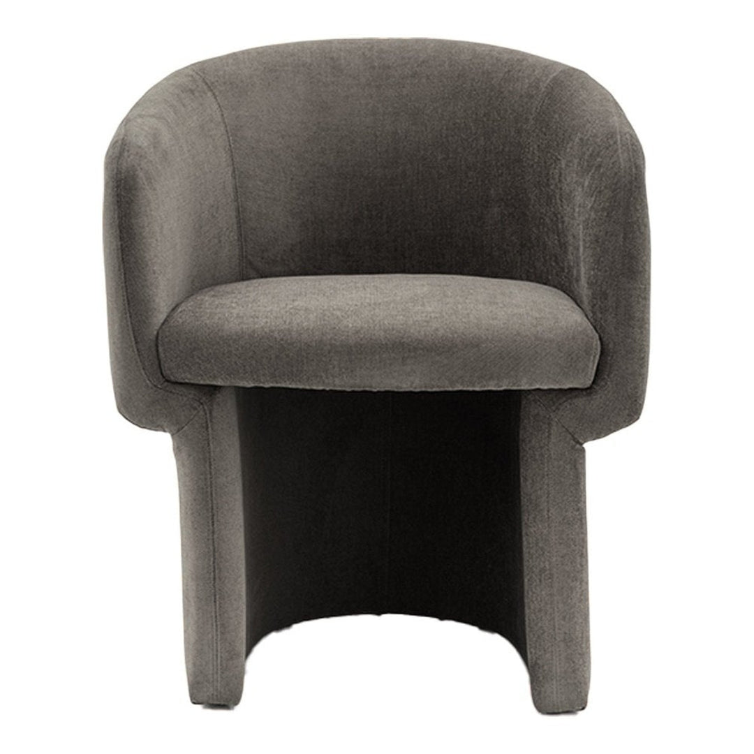 Vintage inspired this dining chair is full of retro cool. The curved tub chair back leads into the curved base, all upholstered in smooth grey fabric. The perfect fit for both modern and vitage inspired interiors this dining chair won't go unnoticed. Also available in cream, red and green colour options.