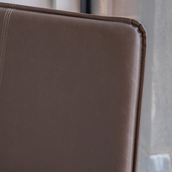 This contemporary occasional chair embodies both comfort and style. Its chic design features a curved seat, upholstered in faux leather, and sleek black metal frame. It is available in two other colours, and matching dining chairs and stools are available.