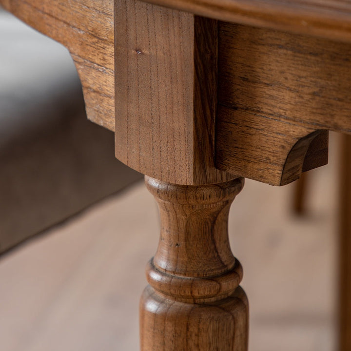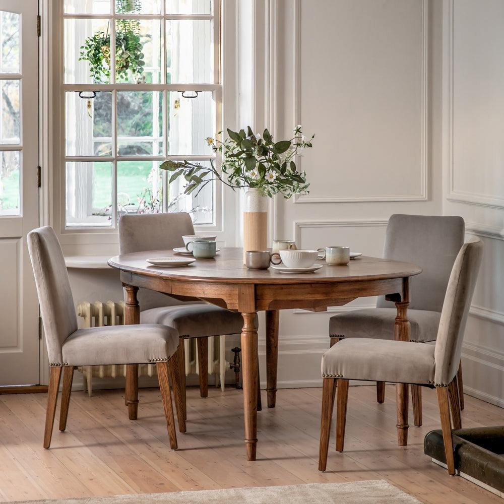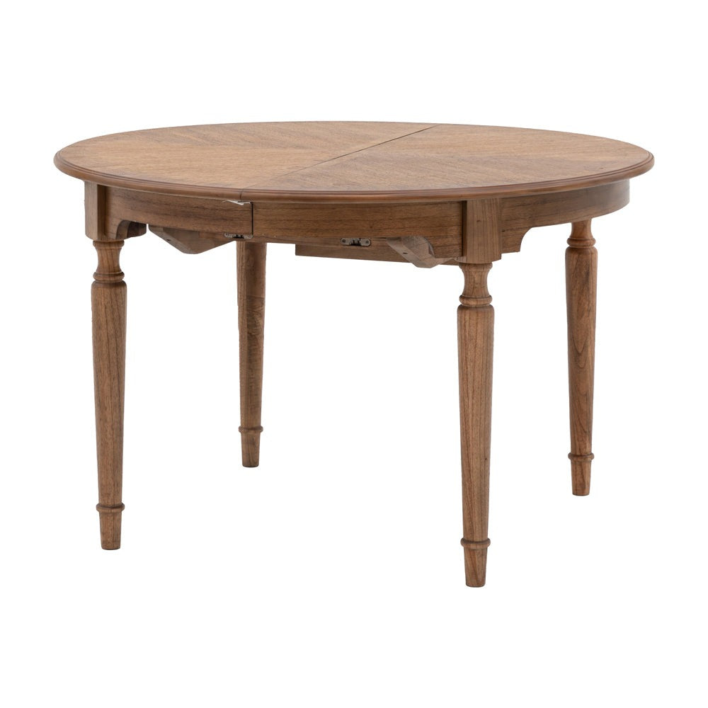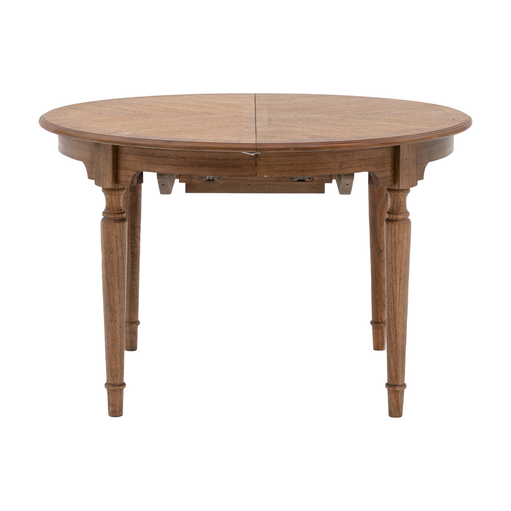 Designed to offer a ‘new traditional’ look with its timeless elegant style with a modern touch, this stunning table will add a sophisticated look to a room. The beautiful rich tonal mid brown Mindy wood solids & veneers feature in inlaid book-matched and marquetry details. For added practicality the table extends with butterfly centre leaves, so it can comfortably seat up to 6 people.