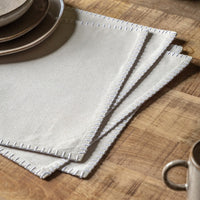 Classic linen effect style for your table, with contrast blanket stitched edge detailing.