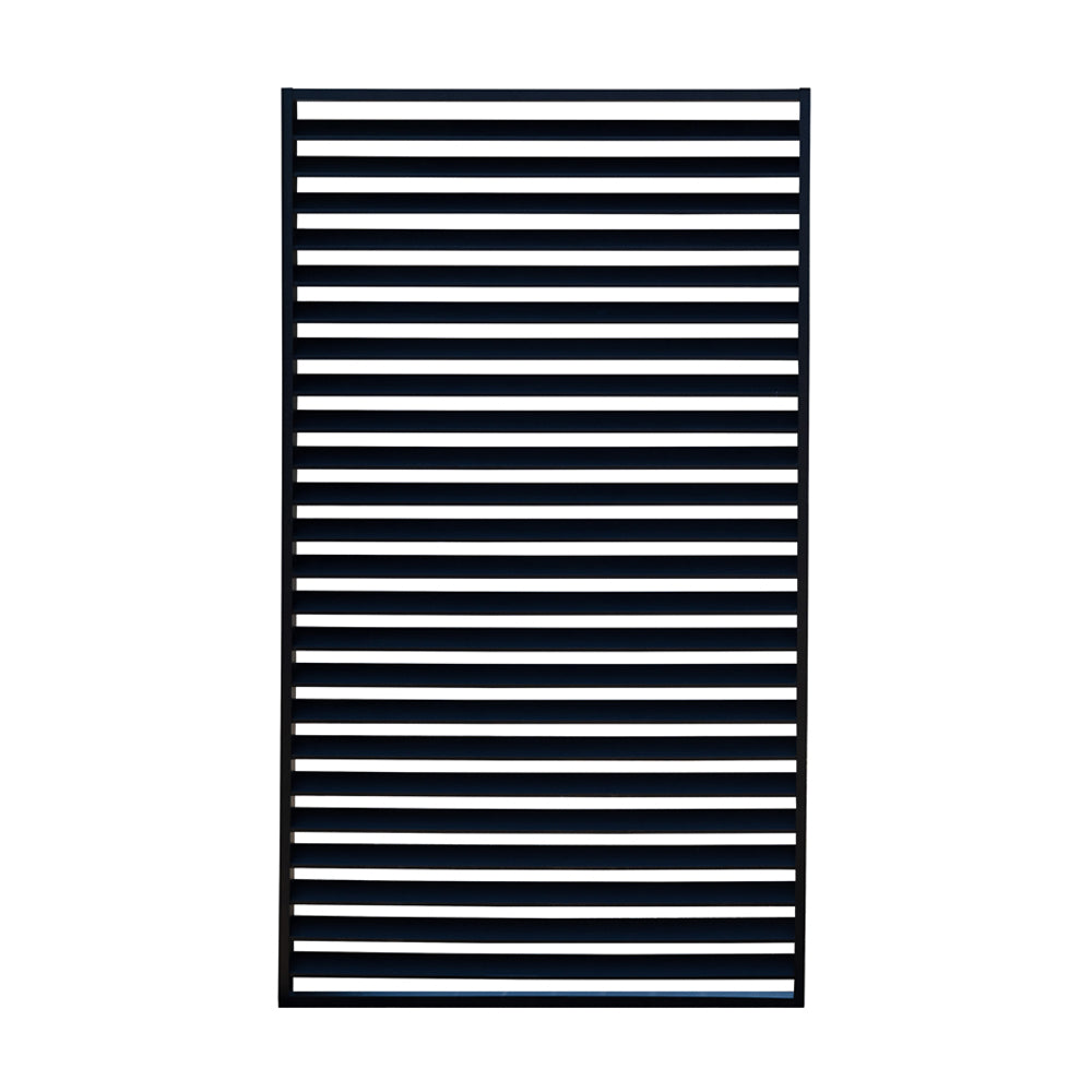 This slatted screen is designed to go with one of our pergolas to add design interest and shade. The screens can be placed in different positions to create the layout you want. They are crafted from aluminium with a contemporary black powder coated finish.