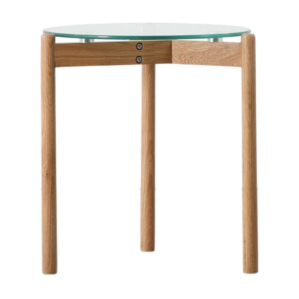 Lovely oak side table offering a stunning contemporary style. It features a beautifully designed solid oak base combined with a tempered clear glass top. A matching coffee table is available, and both are also offered in a black oak finish with a smoked glass top.\n\nThe tables are part of our Packed-Flat Design Project, offering easy delivery to any room in any property, whilst reducing the packaging needed. Easy assembly is required, but all the tools needed are supplied.