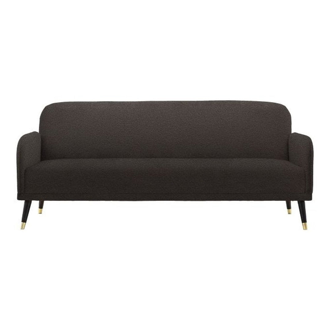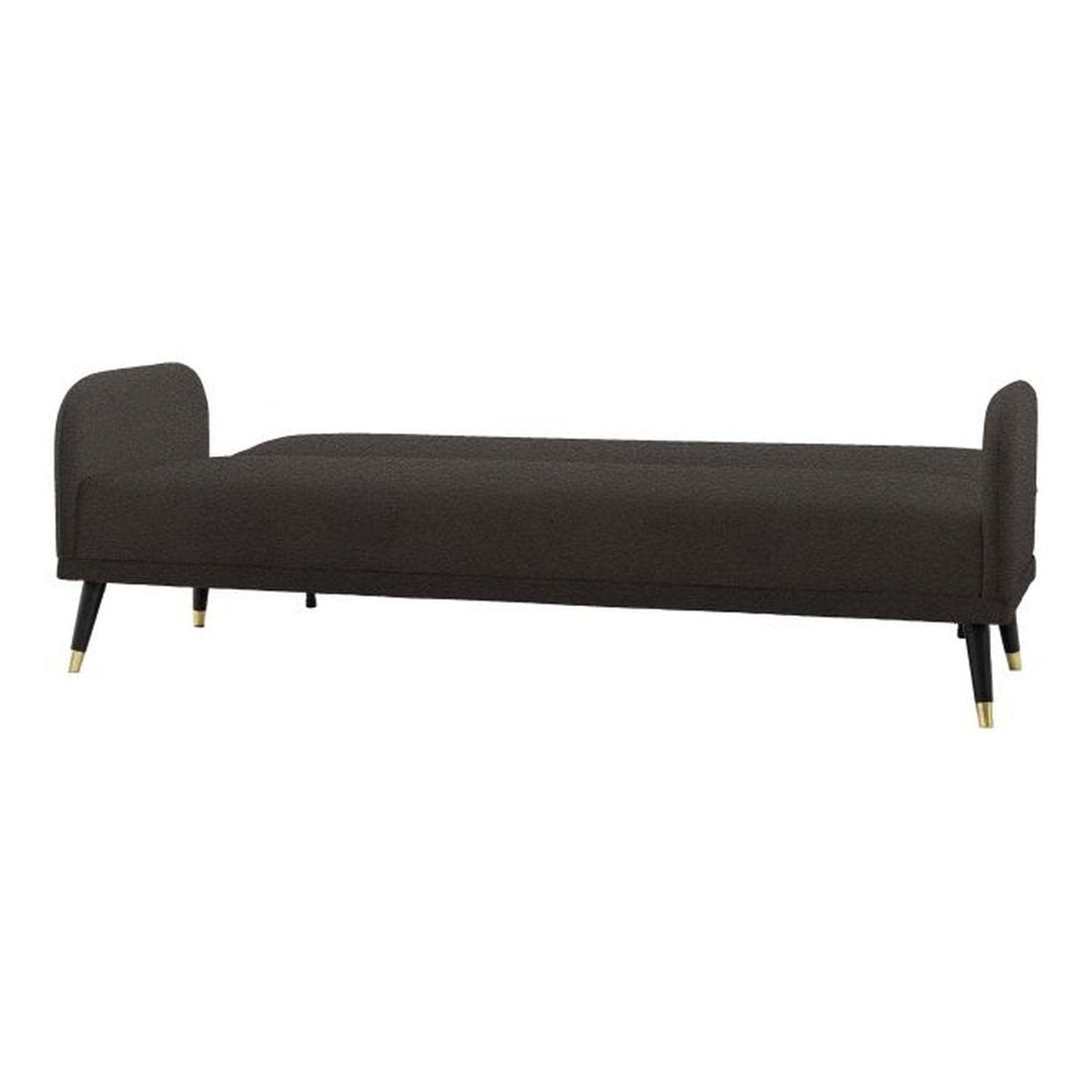 This lovely sofa bed offers stylish contemporary design with the gently curved ends of the back which are echoed in the slim arms. The back quickly and simply folds down to create a bed, perfect for when guests stay overnight. It is upholstered in a lovely deep grey fabric, but it also available in cyan blue and rust.