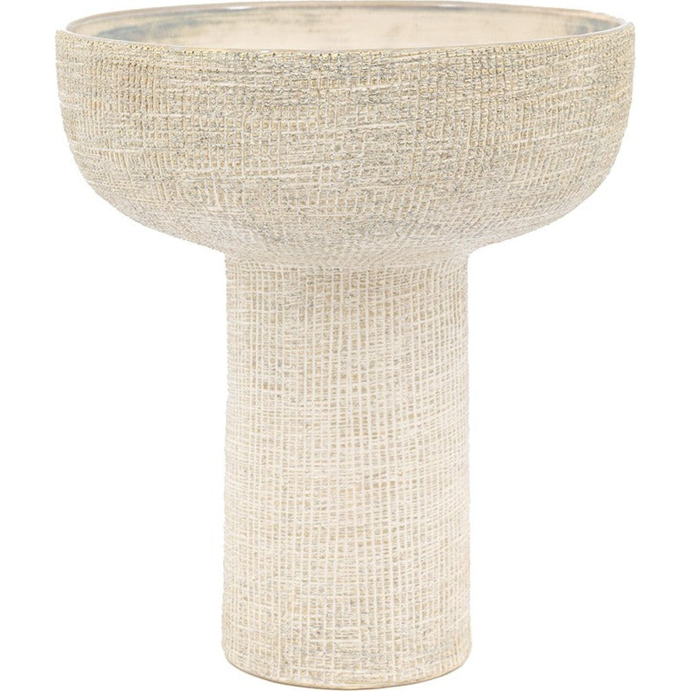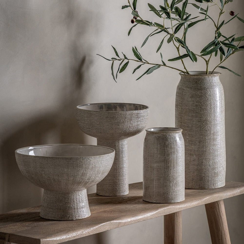 A matt glazed ceramic vase with a subtle ribbed texture, evoking natural forms.