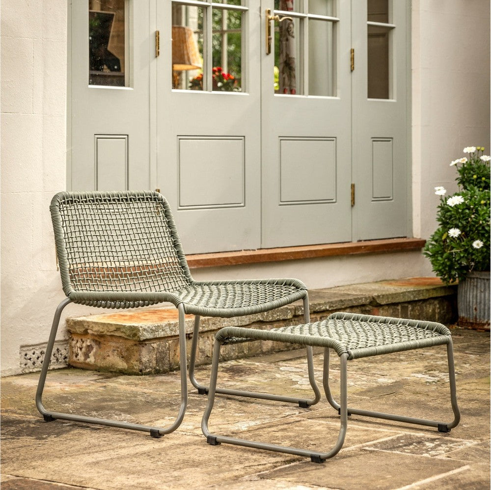 Add a pop of colour and the wow factor to your outdoor space this summer. Sit back and relax in this comfortable chic green lounger chair and footstool, made with a steel frame with woven outdoor rope seat and back for extra comfort.