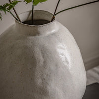 A matt glazed ceramic vase with a natural patina. Inspired by seed pods in nature, the sculptural form of this design would add a statement to any natural interior.
