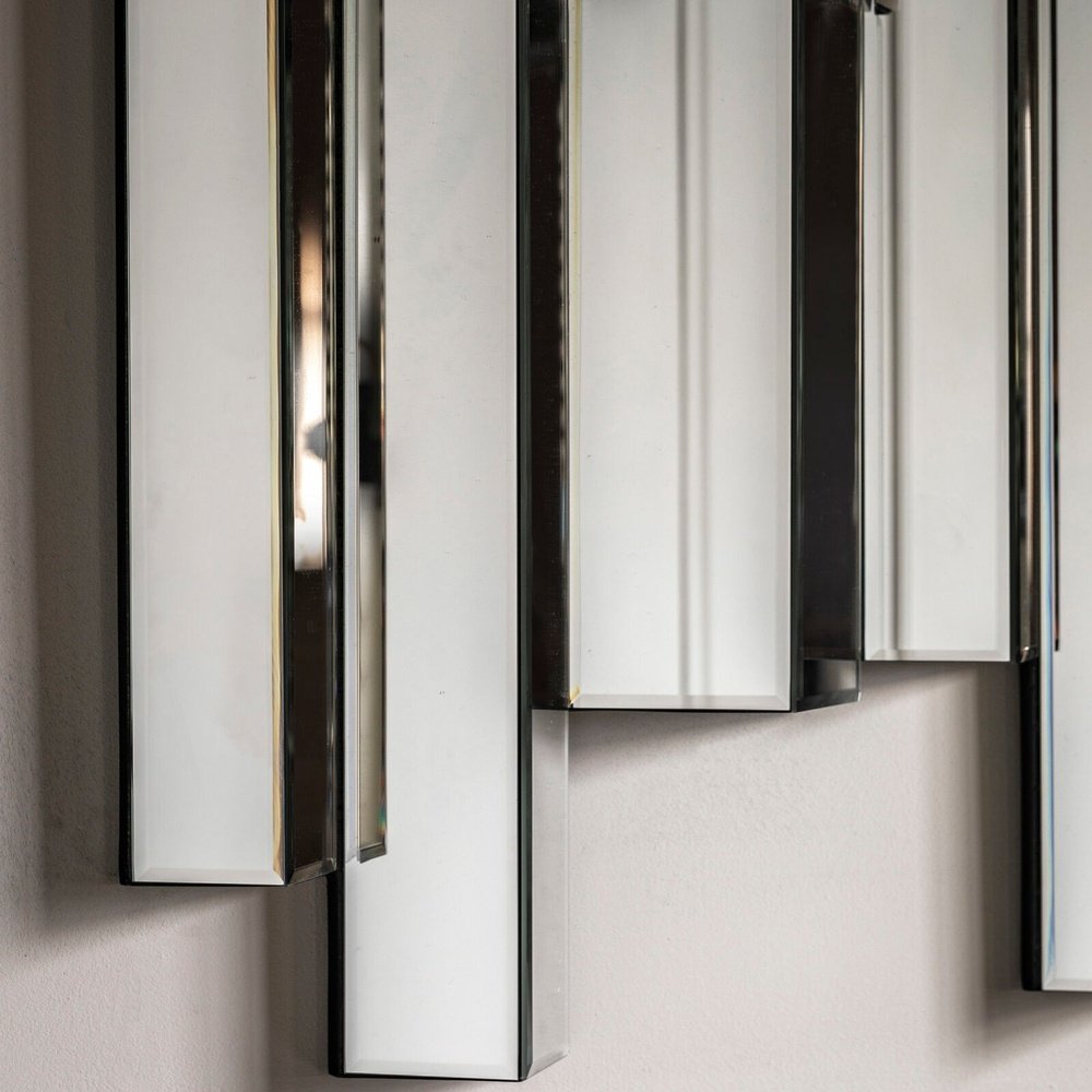 Transform your home with this Art Deco inspired statement mirror, featuring bevelled abstract panels.