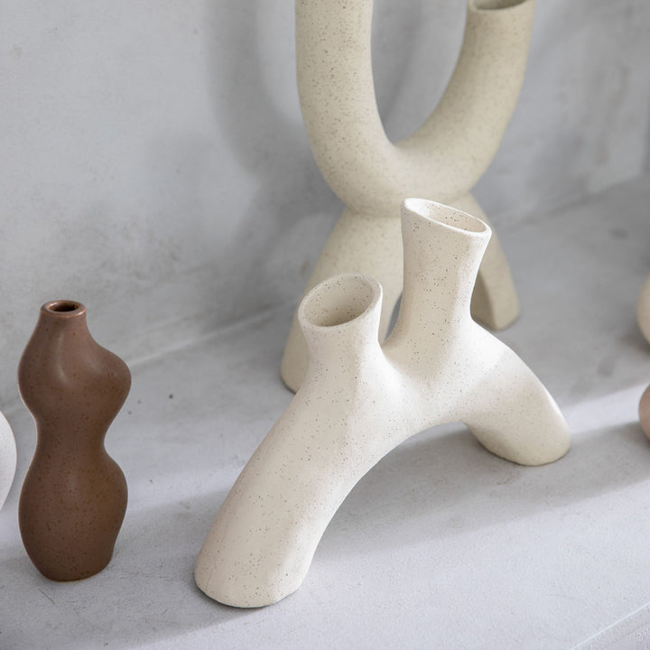 This unusual ceramic vase offers an organic shape which is inspired by nature. This is perfectly complemented by the matt textured glaze.