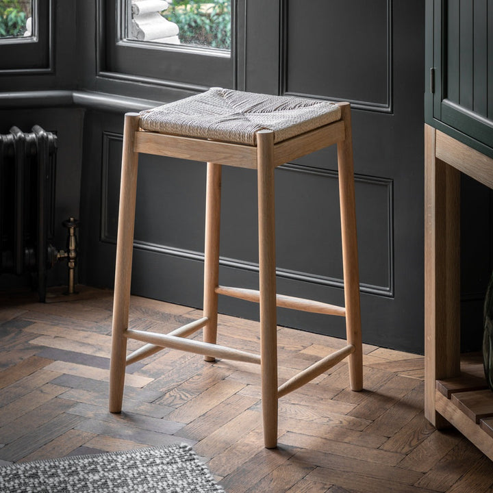 Perfectly combining traditional style and contemporary design, this stool fits perfectly in both modern and farmhouse style interiors. The stool features simple shapes and solid oak frame with a hand woven rope seat. Due to the handmade nature of this product colour variations may be present.