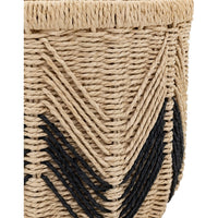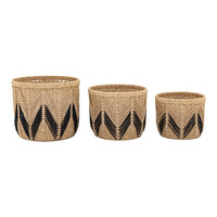 Set of three characterful hand woven baskets, with a natural rope weave mixed with a contemporary black zig-zag design.