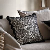 A unique scalloped edge cushion with subtle, delicate embroidery.