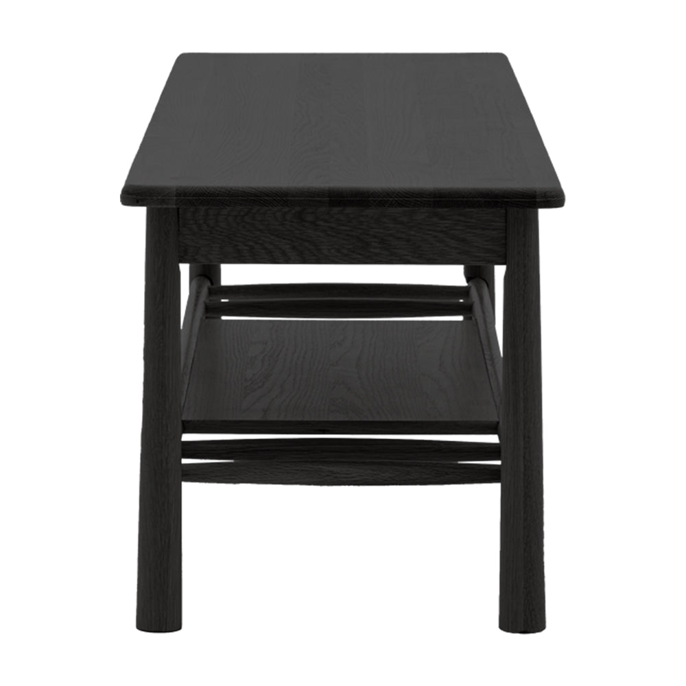 Made from the finest solid oak and veneers this low media unit combines style and practicality. The black oak veneered top, solid oak underframe and low shelf offer plenty of storage for all your media needs while the tapered legs and spindle details add the essence of Nordic style.
