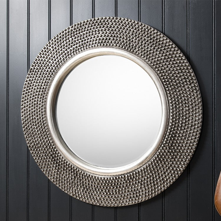 Round Frame with a raised bobble effect pewter finish.