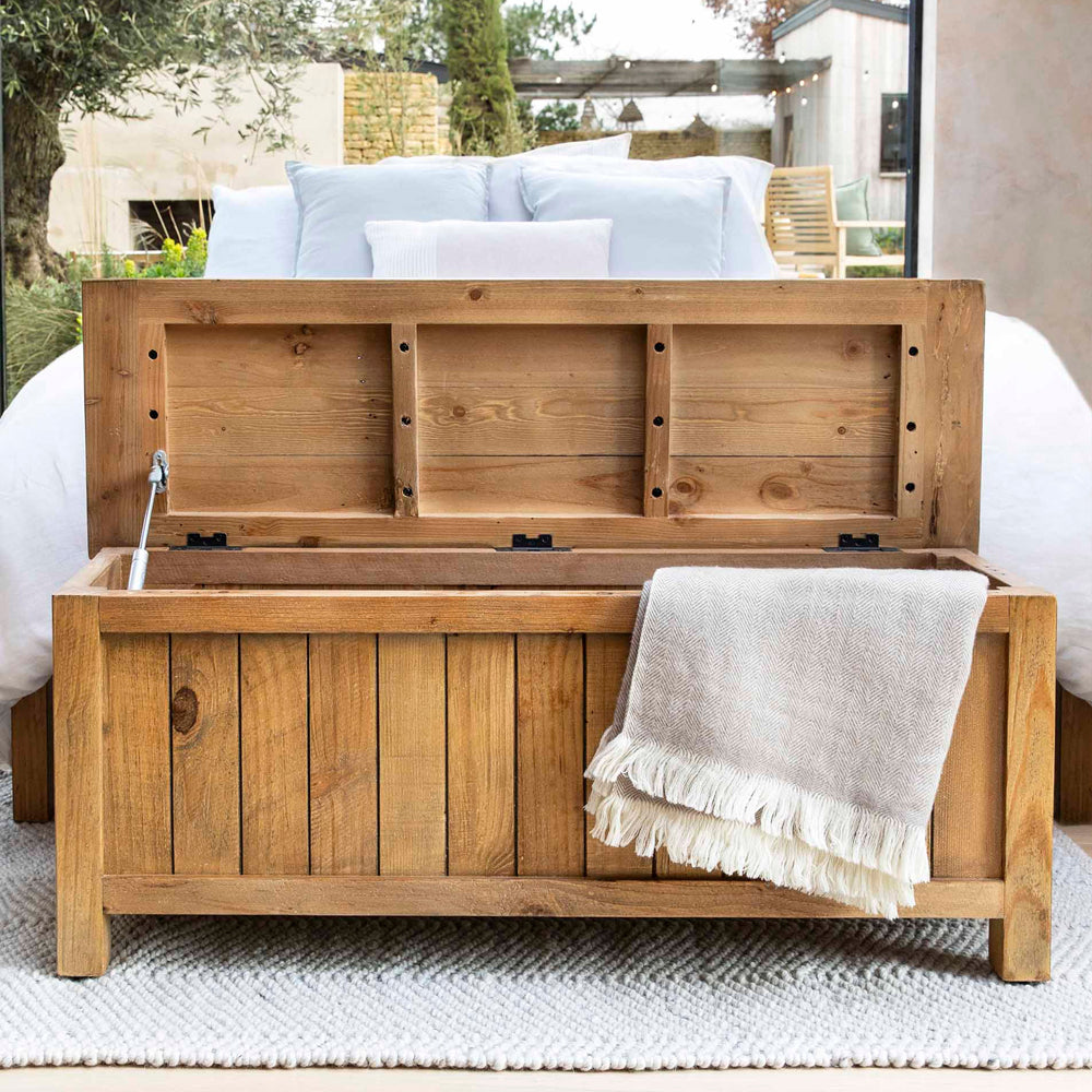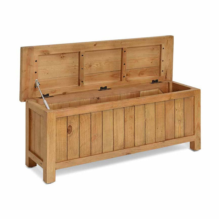 The Garden Trading Ashwell Storage Bench Box in Natural offers both storage and seating solutions for your home. Crafted from reclaimed pine, this bench box is ideal for storing household essentials or for seating in hallways, boot rooms, or living rooms. Its gas lift support ensures soft opening and closing, providing peace of mind, especially with young children around. Pair it with matching furniture from the Ashwell range for a unified home style. Elevate your interior decor with the Ashwell Storage Bench Box and enjoy its versatility and functionality.