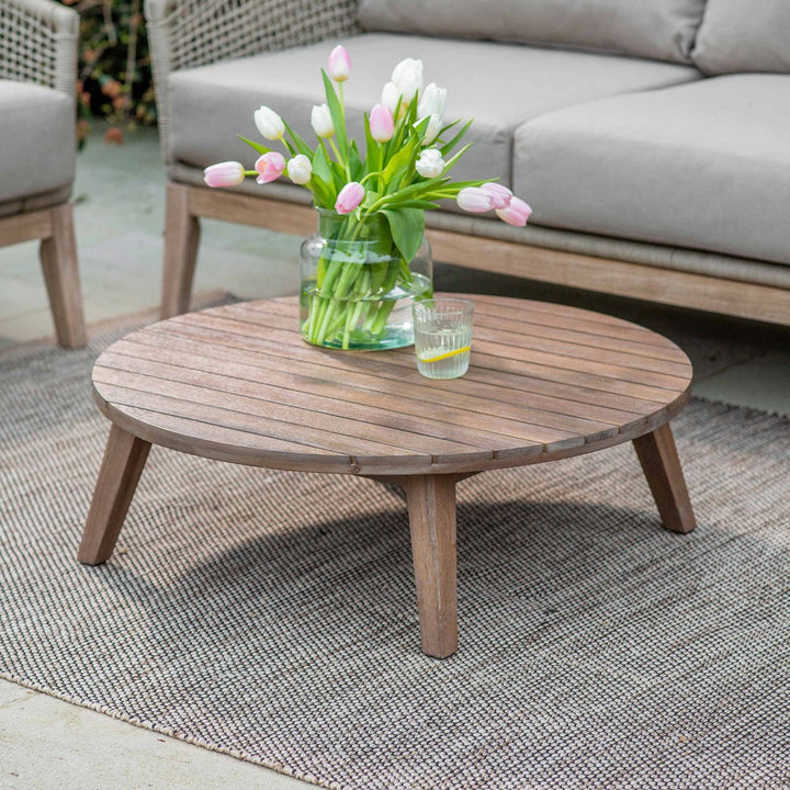 Create a beautiful outdoor living space with the Garden Trading Durley Coffee Table in Large Dark Natural. With ample room for drinks and magazines, this weatherproof acacia table transforms patios and decking areas into inviting retreats. Pair it with the Froxfield Sofa Set for a coordinated look and enjoy relaxed weekends in the garden with style and convenience.