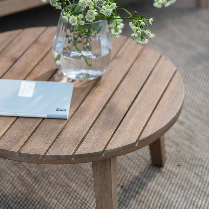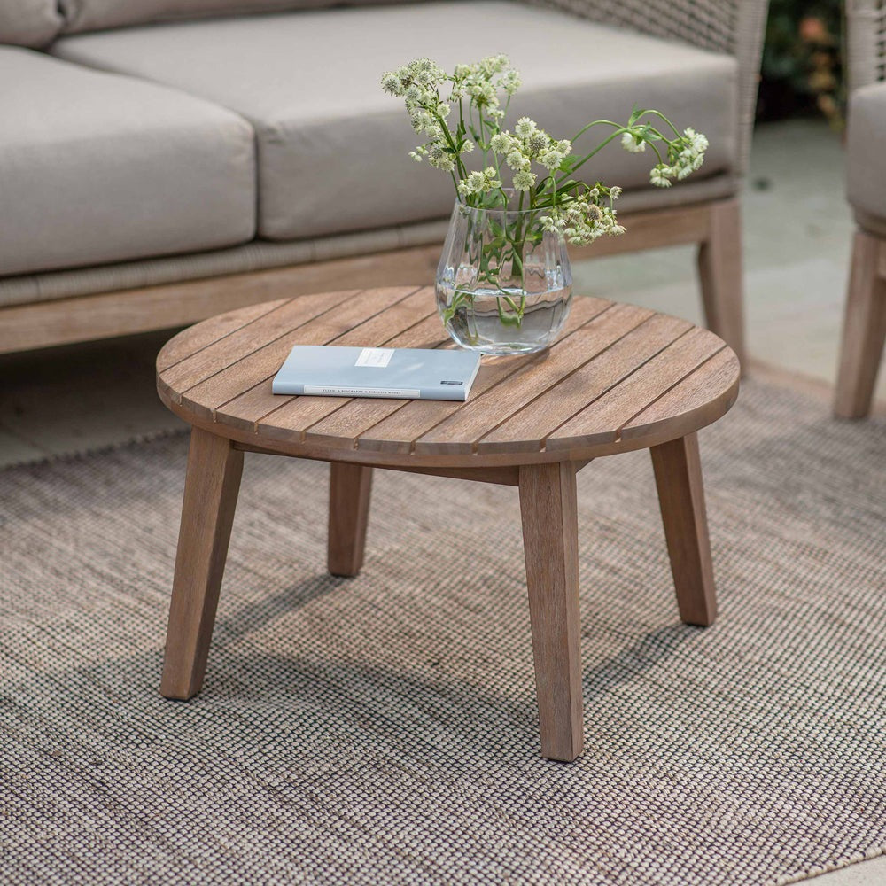 Enjoy al fresco moments with the Garden Trading Durley Coffee Table in Small Dark Natural. Crafted from solid acacia, this smaller version adds style and functionality to patios and decking areas. Perfect for refreshing drinks or potted plants, it complements the Froxfield Sofa Set for a relaxed outdoor atmosphere.