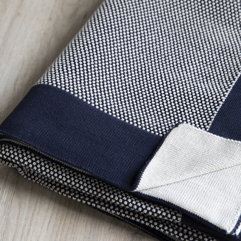 From keeping warm to accessorising interiors, our Framlingham Throw is made from cotton, in a soft and subtle Dark Blue and Oatmeal weave.