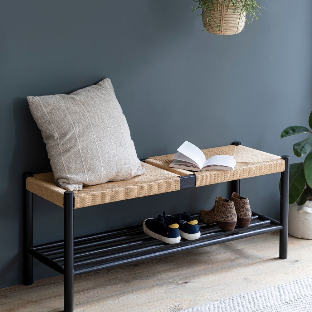 Introducing the Longworth Hallway Bench in Black, a Scandinavian-inspired piece that effortlessly combines style and functionality. This versatile bench is designed to provide much-needed seating and storage solutions throughout your home. Crafted with an oak frame and a lower shelf, it exudes durability and elegance. The seat, made from twisted papercord, not only adds a Scandinavian touch to your decor but also offers remarkable toughness and strength. Elevate your home's organization and aesthetics with the Longworth Hallway Bench, where Scandinavian simplicity meets robust craftsmanship for a tasteful and practical seating and storage solution.