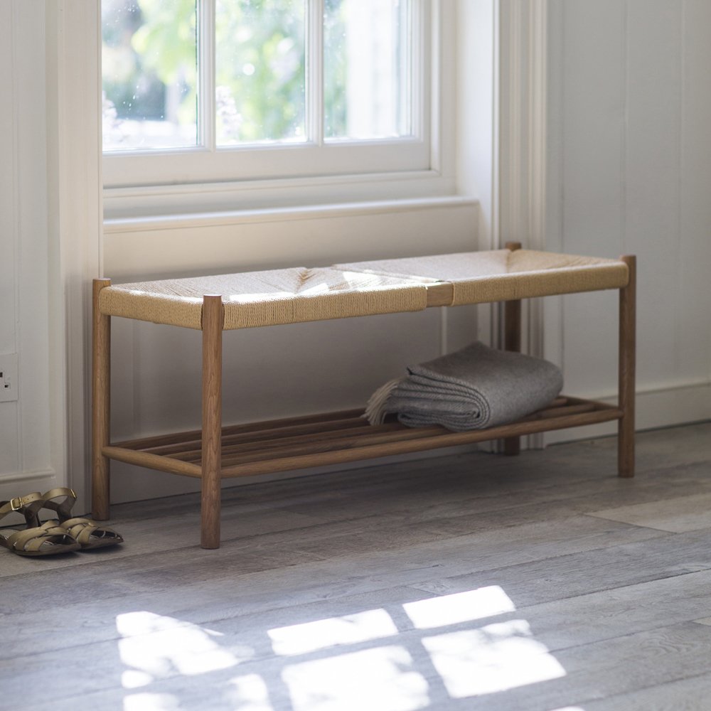 Introducing the Garden Trading Longworth Hallway Bench in Natural, a timeless piece with a Scandinavian touch. Crafted with an Oak frame and lower shelf, and featuring a seat made from twisted papercord, this bench offers both seating and storage throughout the home. Perfect for small spaces, it"s ideal for use at the foot of a bed, under a window, or in the hallway. Its elegant proportions add grace to any room while keeping clutter at bay. Trust in the Longworth Hallway Bench for enduring style and functionality in your home decor.