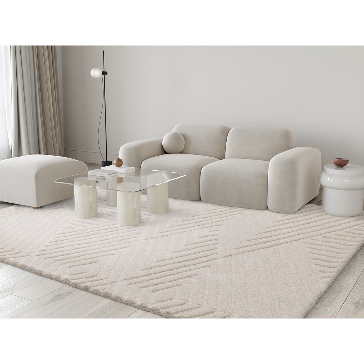 A modern classic, the geometric angles, sweeping lines and dramatic curves of the Hague collection are complemented by a textural cut and loop finish.