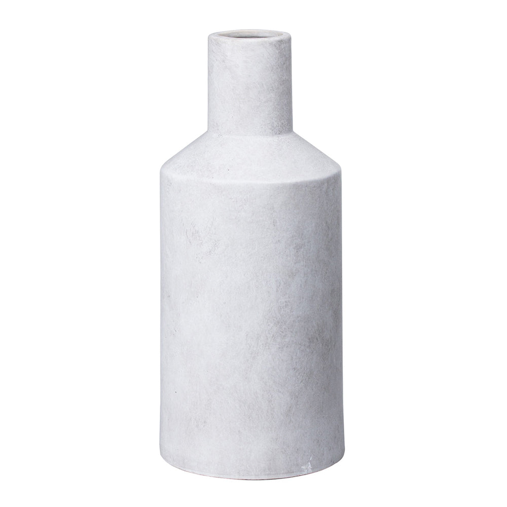 This is the Sutra Vase, part of our Darcy vase collection. This collection encompasses a great mixture or traditional and contemporary shapes. The Darcy Sutra Vase combines a contemporary shape with a timeless colour that will suit modern minimalist and cosy country chic homes alike. The natural stone finish to this elegant vase allows you to layer extra texture into a space and the slim neck of enables the stylish display of a small number of stems. The Darcy vases team beautifully with our faux flowers and are intended for faux rather than real flowers: if customers wish to display real flowers in them, they must use a florist's cellophane wrap to contain water.
