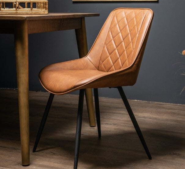 The Oslo Dining Chair is the perfect addition to any interior. Seat crafted in tan faux leather sat on metal legs. Easily assembled and styled for comfort make this dining chair the perfect paring for your dining table.