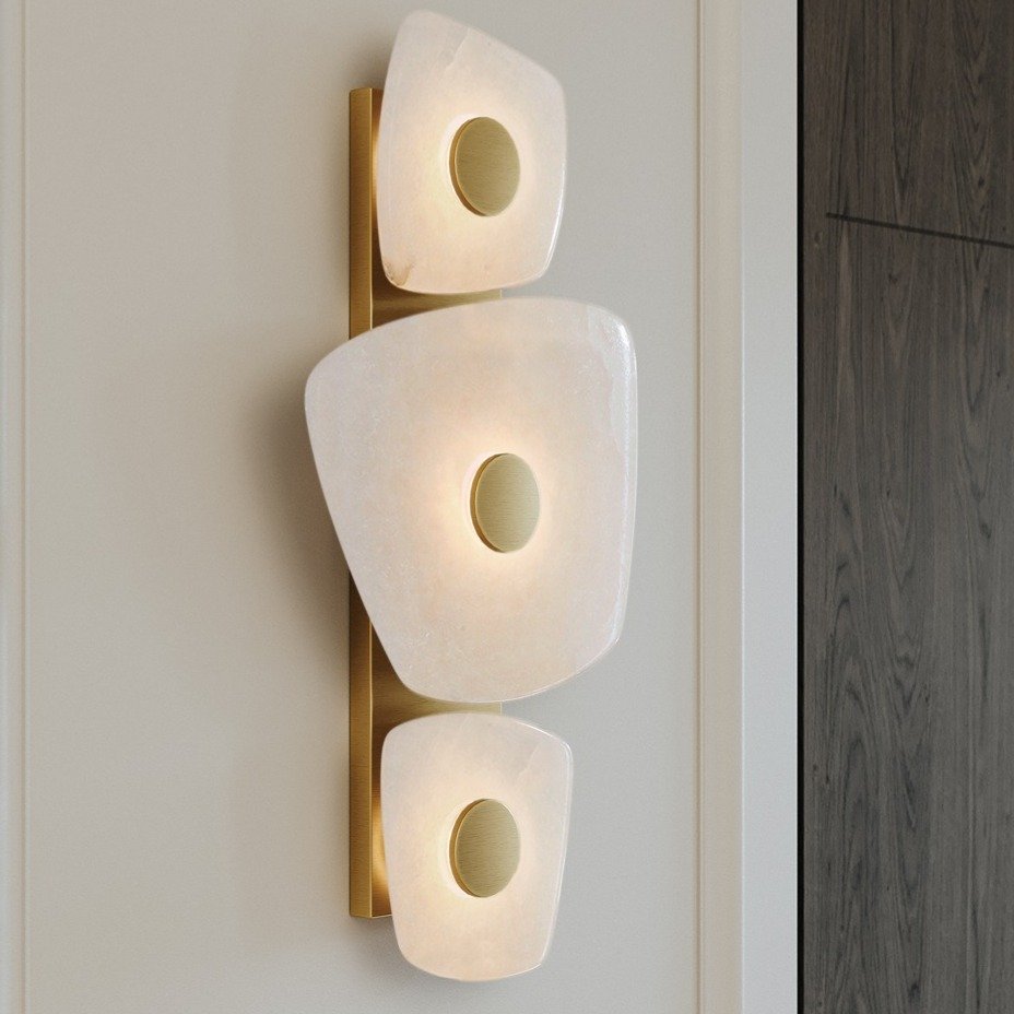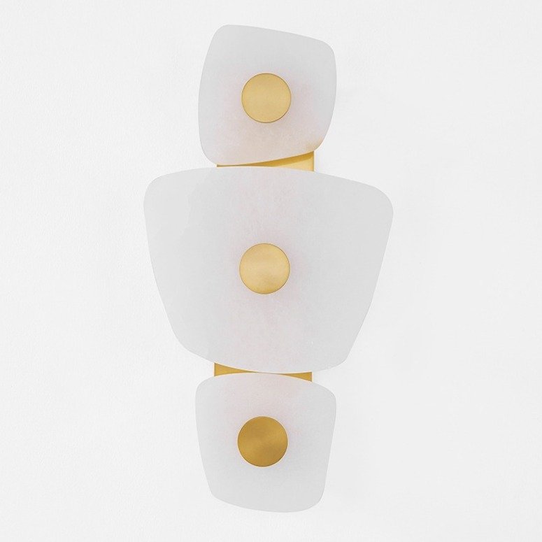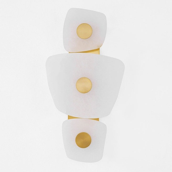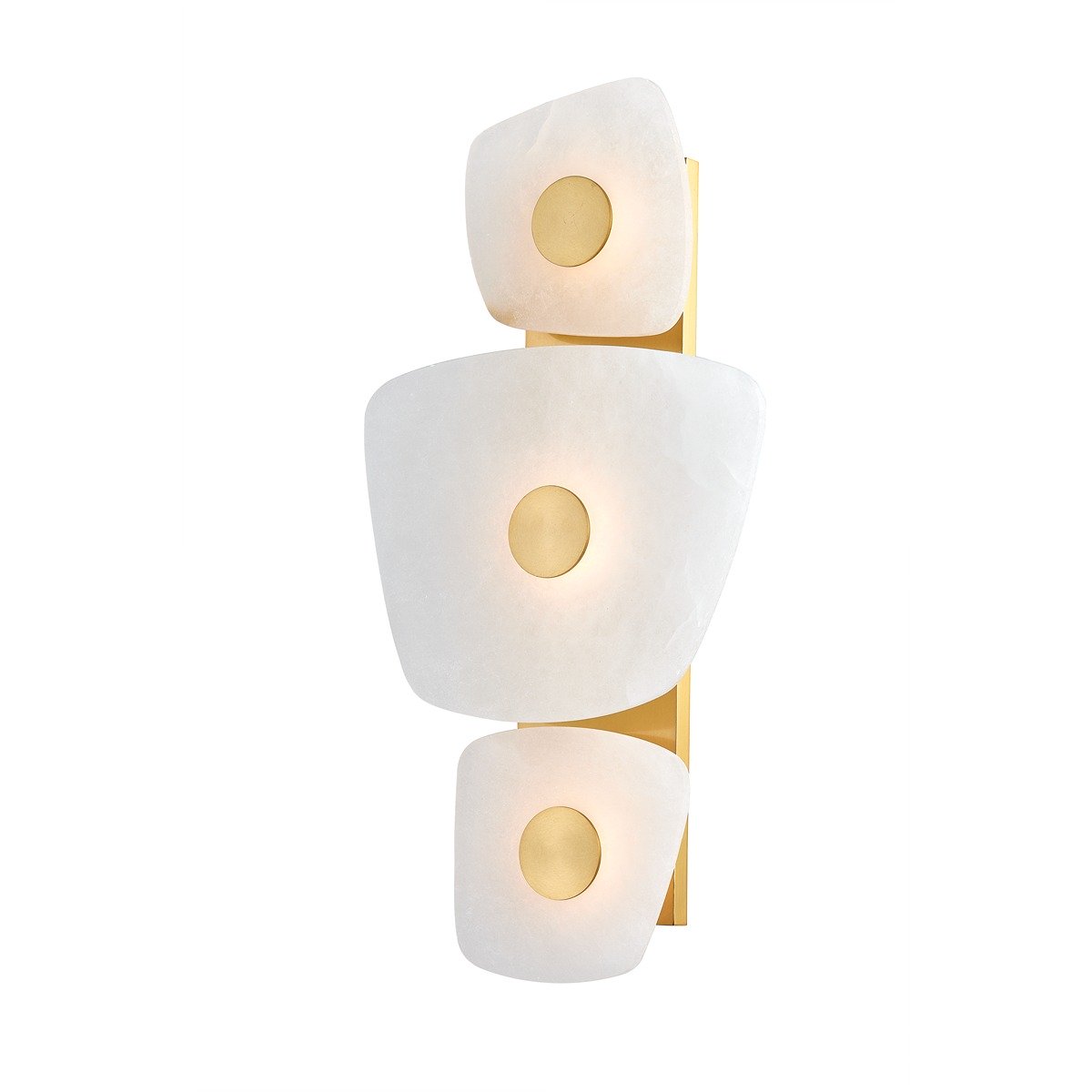 Holmdel 3 Light Wall Sconce - Aged Brass: The Holmdel 3 Light Wall Sconce in aged brass is a beautiful blend of brass and alabaster, offering an elegant design for hallways or living rooms. This wall sconce provides both style and ambient light.