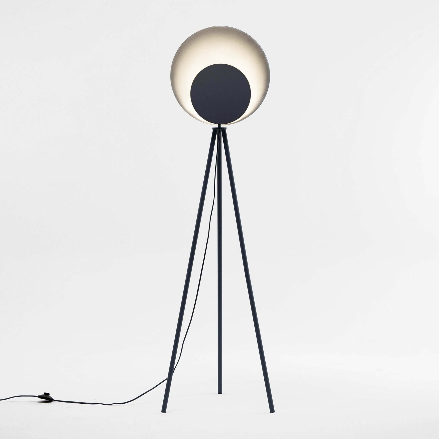 This statement floor lamp is the definitive houseof icon. The tripod base suspends an oversized dome head, which diffuses a cool illuminating glow. Ideal for a living space or bedroom.