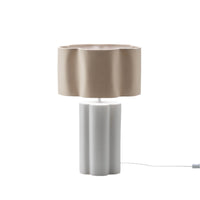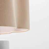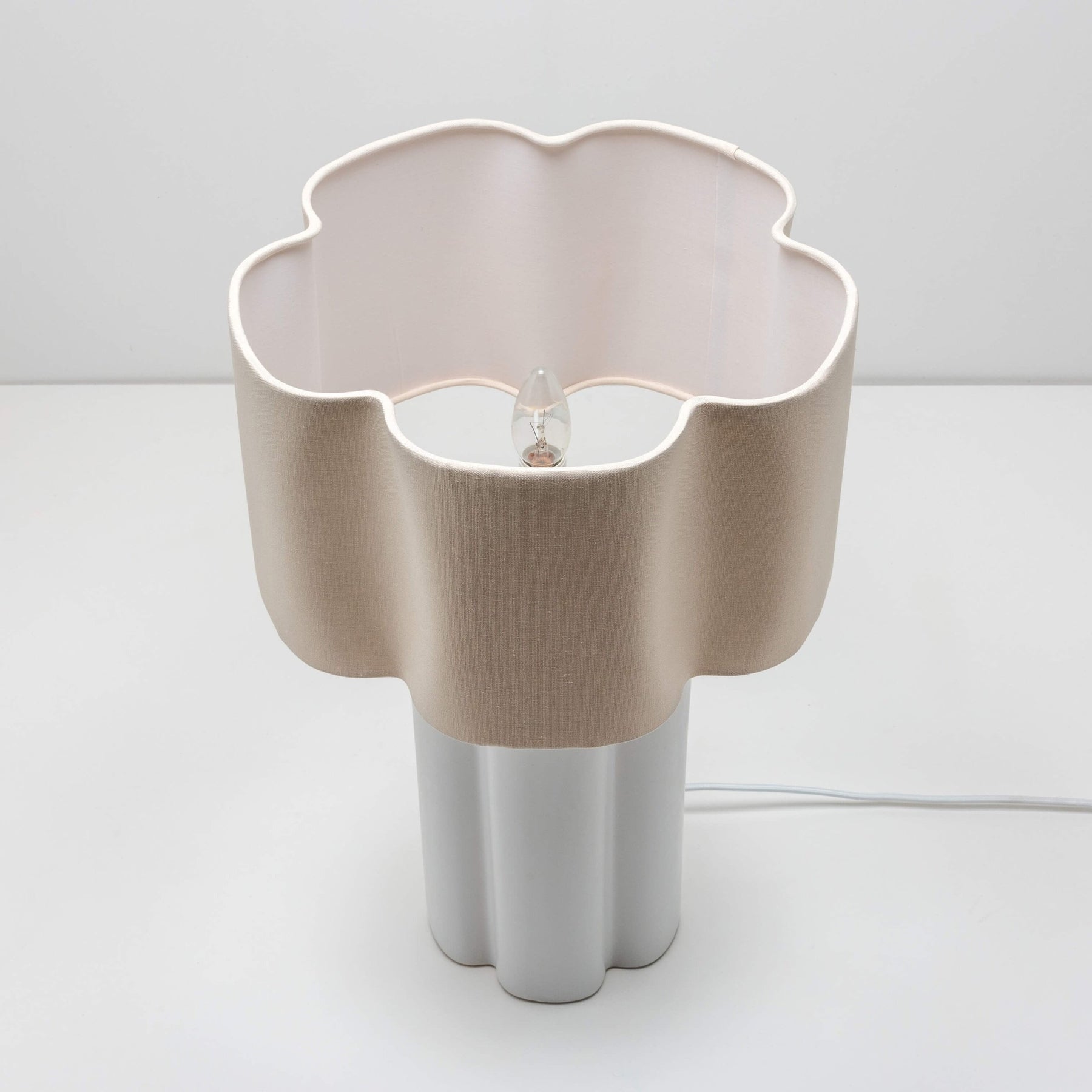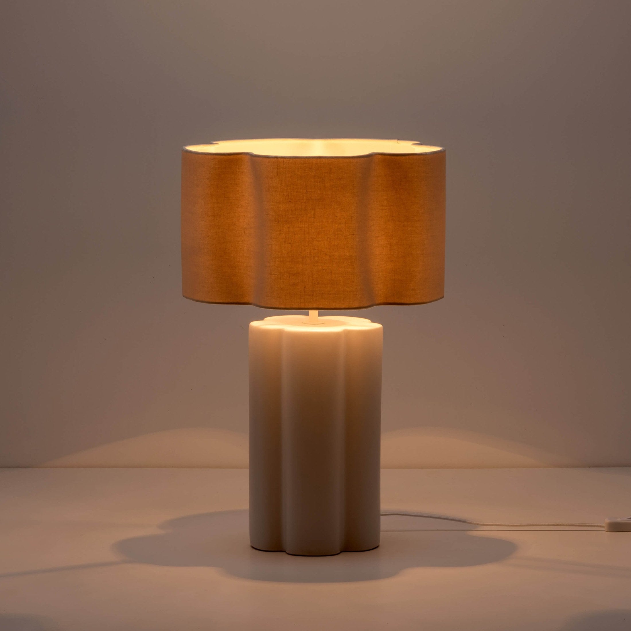 Soften your interior with the natural elements of ceramic and linen. The sculptural ceramic base complements the flower-shaped linen shade. Standing tall at 54cm, this table lamp will make a statement on a sideboard or create warmth in a hallway or bedroom