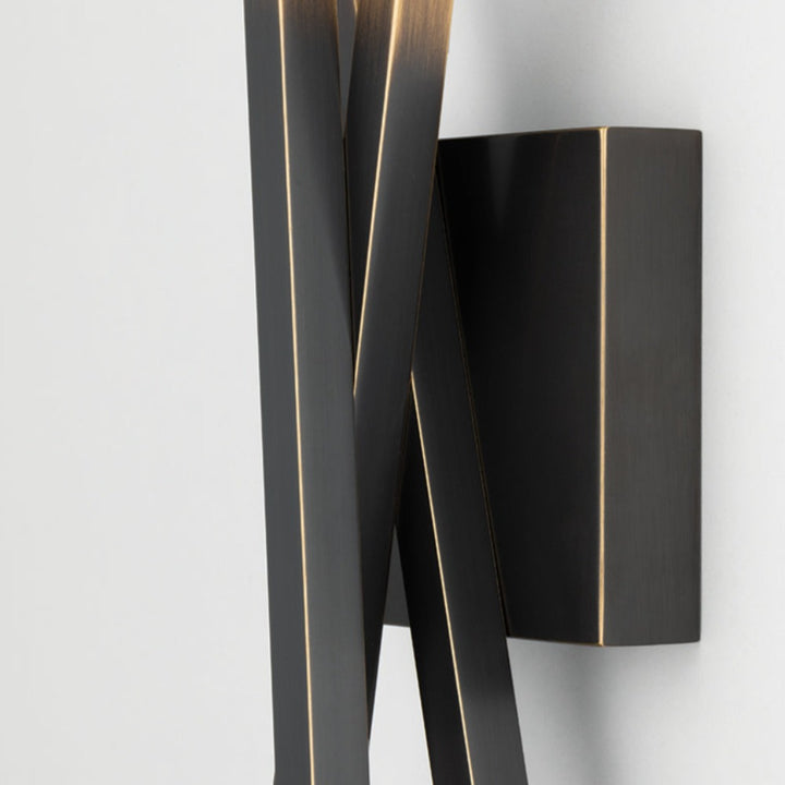 Angled pieces of gradient brass in various sizes intersect for a look that is strong and unexpected.