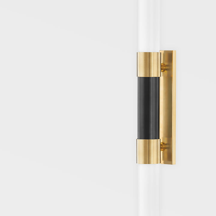 Milk-glass tubes are sheathed with bold black shades and capped with metal accents, creating an interesting effect that will bathe your interior in a warm, inviting glow. The Huntington chandelier comes in a choice of two stunning finishes: The aged-old bronze version is pictured below, and the second finish is a gleaming, polished nickel. Both will elevate the tone of your interiors.