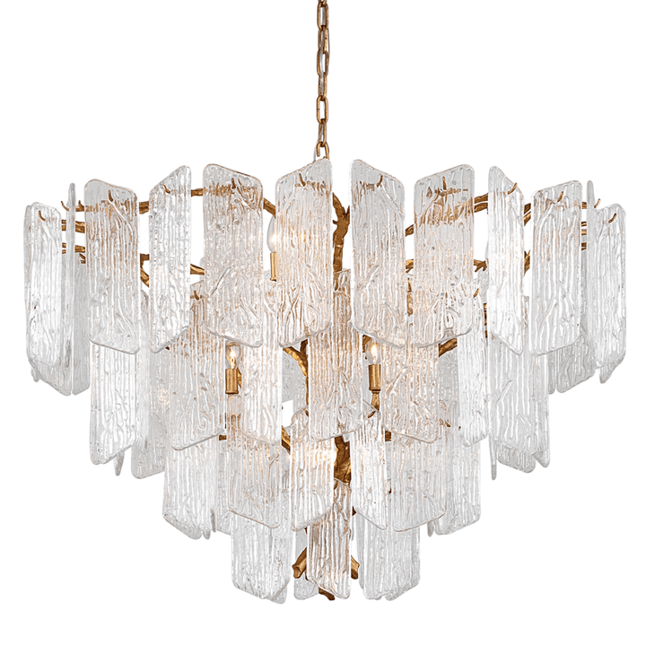 The copper finished canopy and base are intricately crafted, reminiscent of golden twigs encased in winter's ice. The Piemonte is versatile enough to blend effortlessly with many different design schemes, looking fabulous in lounges, dining rooms, and hallways.