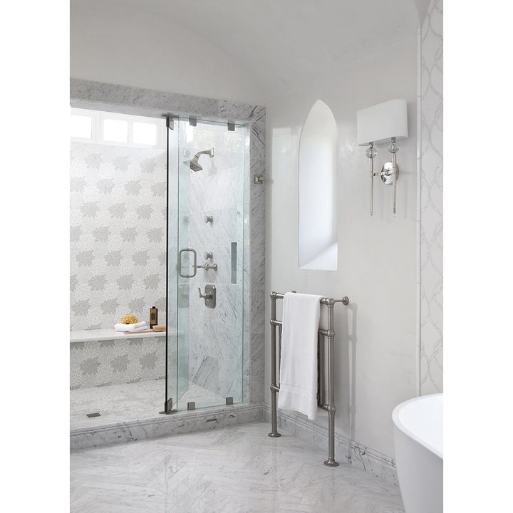 The polished nickel finish perfectly complements the shade's light hue and together they form a chic and sophisticated piece for your modern home.