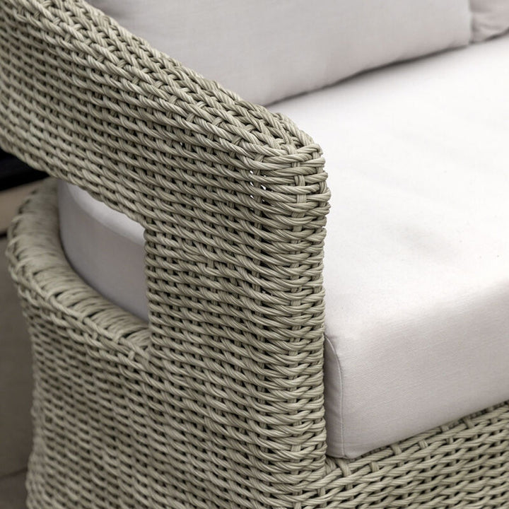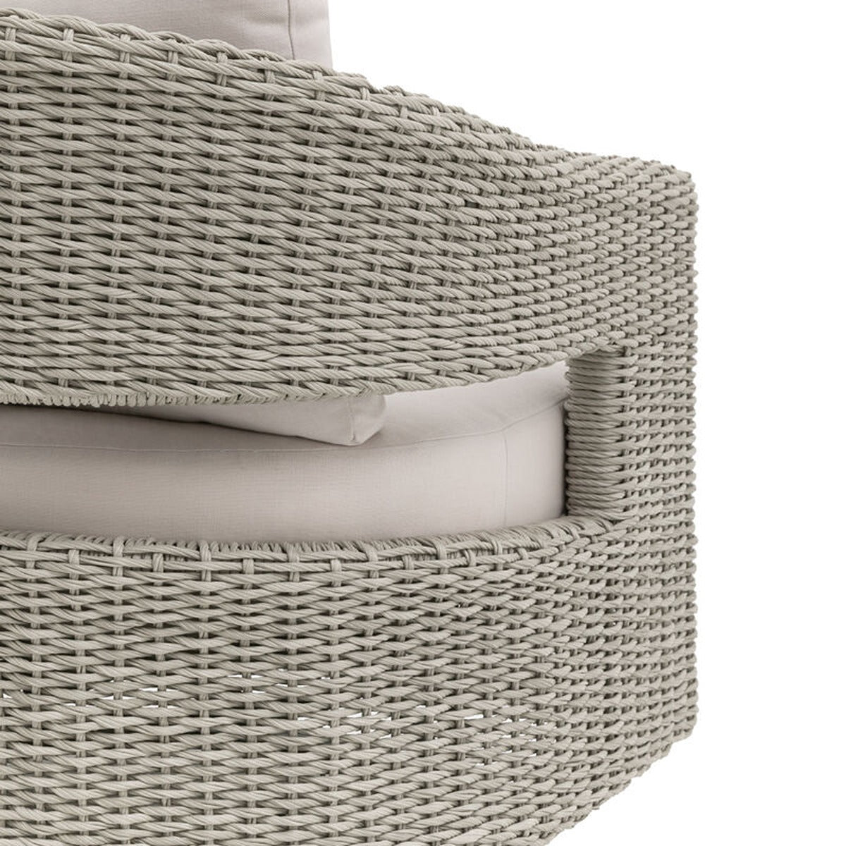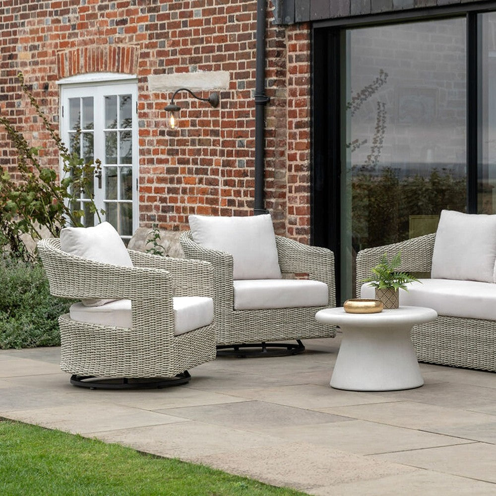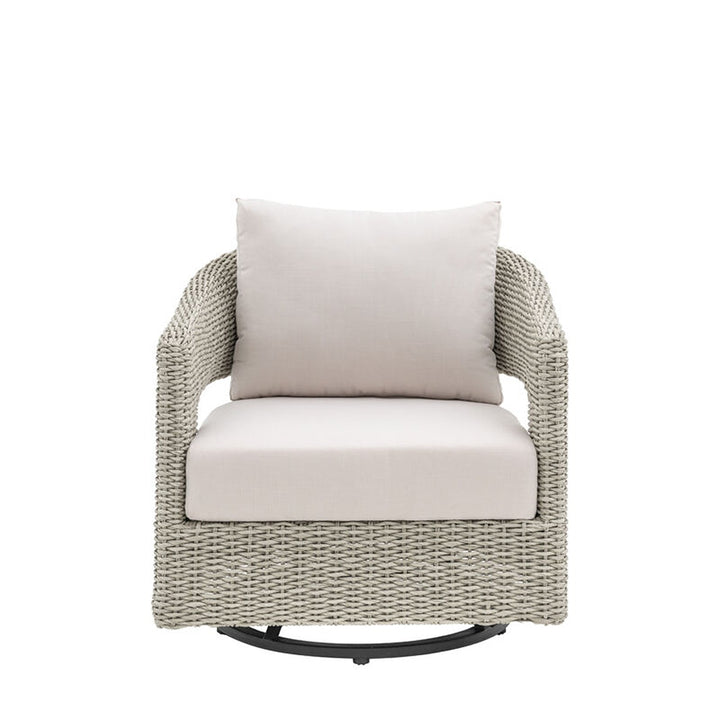 This stylish swivel chair is designed for both comfort and style. Crafted with a blend of natural wicker and plush cushions, it offers a relaxing and supportive seating experience. The swivel function allows you to easily adjust your position to enjoy the best view of your surroundings. The neutral color palette complements any outdoor decor, making it a perfect addition to any patio or garden.