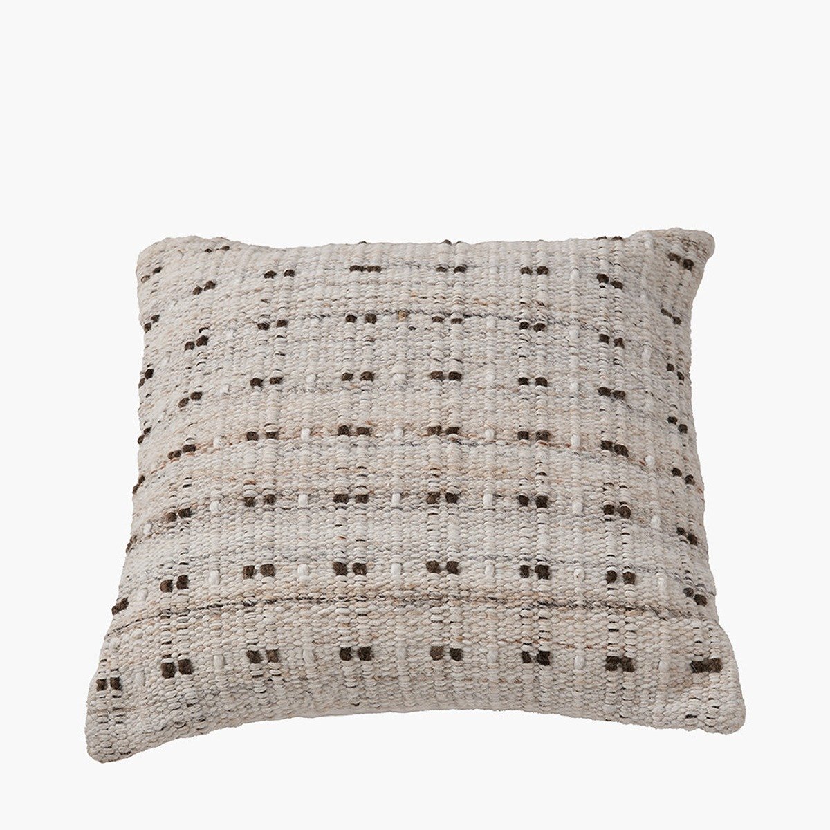 The PET Yarn range of indoor and outdoor cushions are made from recycled plastics, that are cleverly presented in thin threads of polyester yarn enabling our weavers in India to manufacture them into textured, yet non-absorbent cushions. This particular generously proportioned scatter cushion in natural hues, makes use of a double stitch pattern design for a deeply textured effect, ideal for adding softness to your decor. This design is also also available in a matching small and large rug. As this material is non-absorbent, it means you can happily use this cushion outside and gently wash or brush off any marks that may occur over time. However, during prolonged periods of inclement weather, it is advisable to allow the cushions to dry under cover when not in use. Don't forget these cushions look great indoors too.